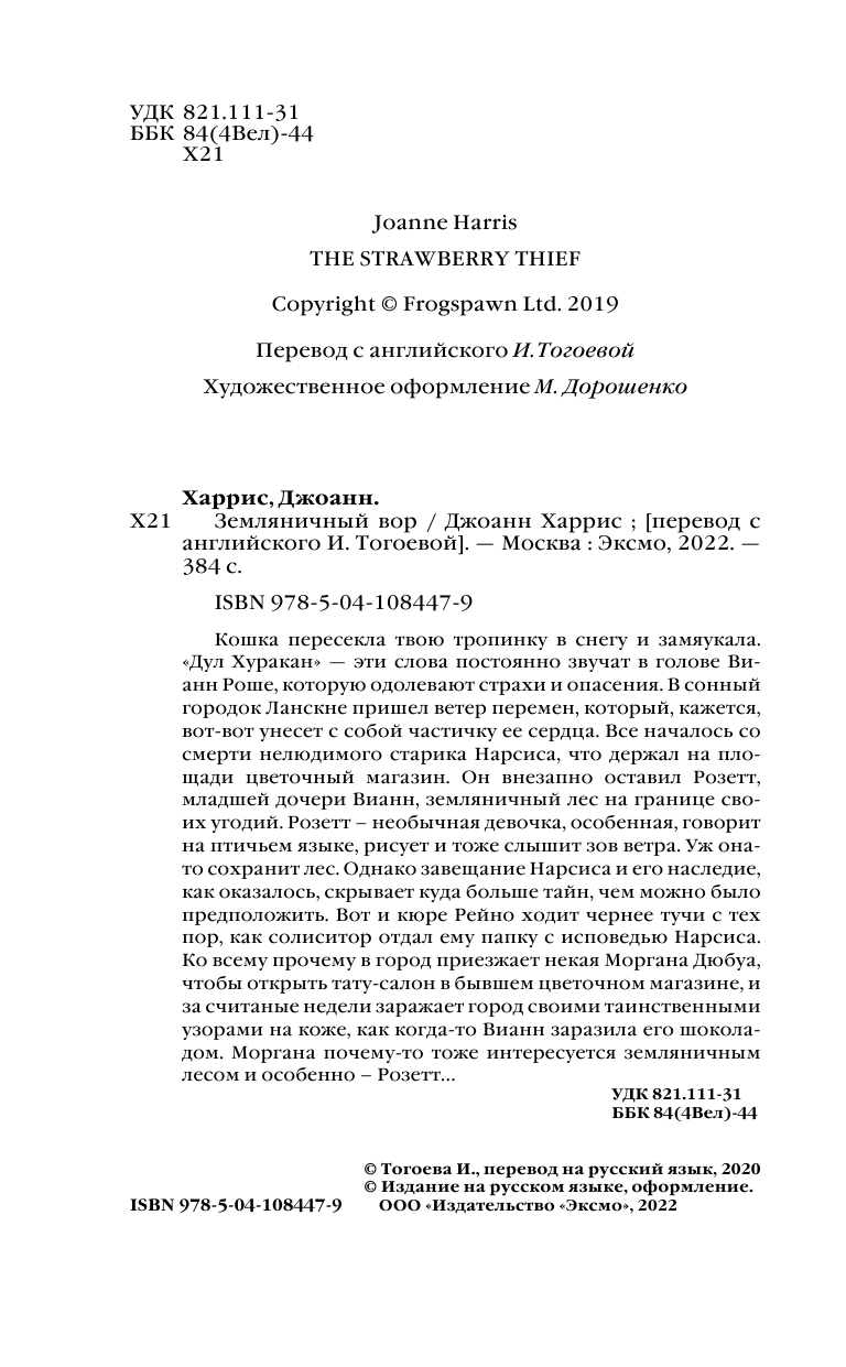 Книга: Земляничный вор (Джоанн Харрис); Эксмо, Редакция 1, 2022