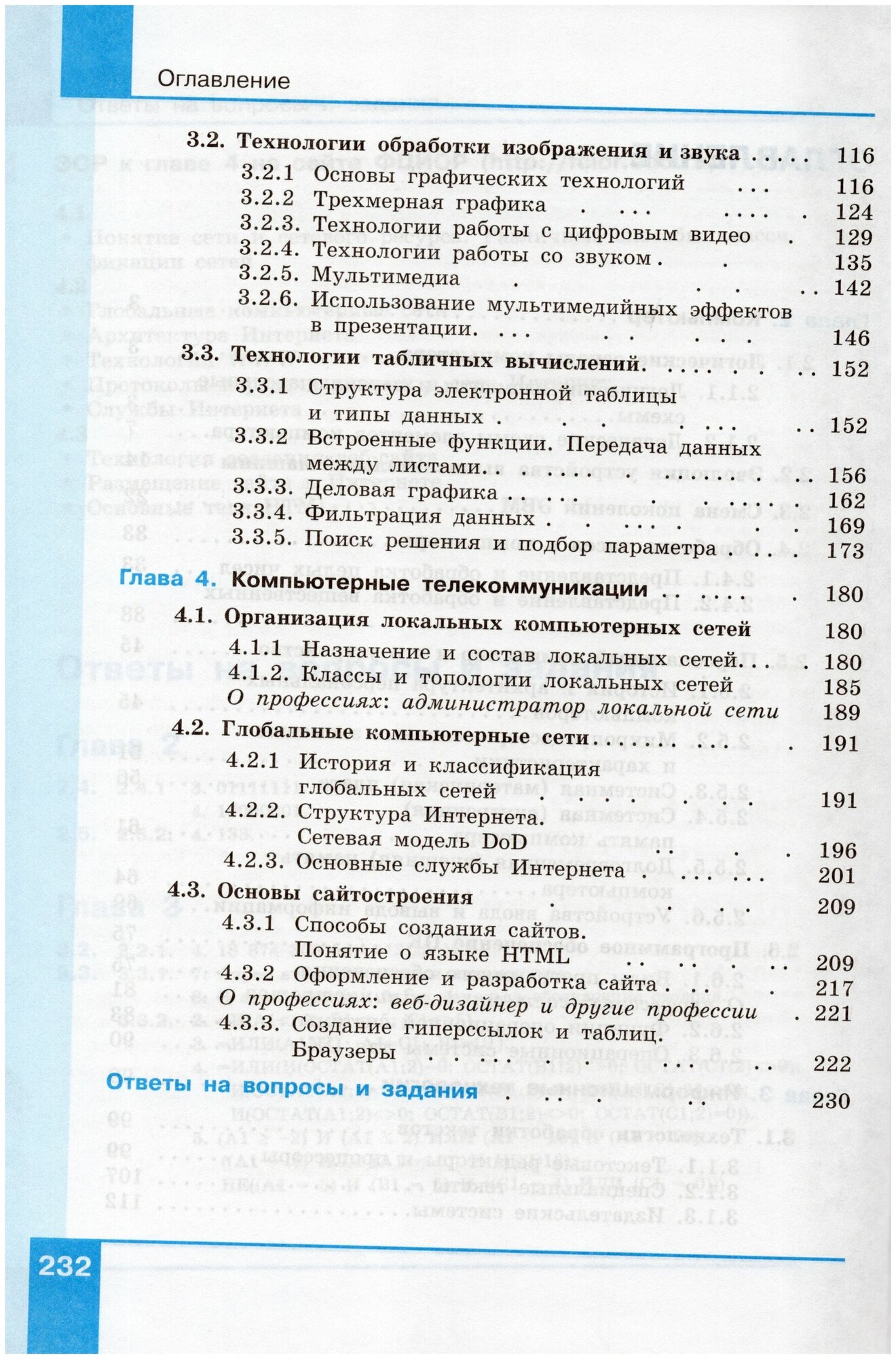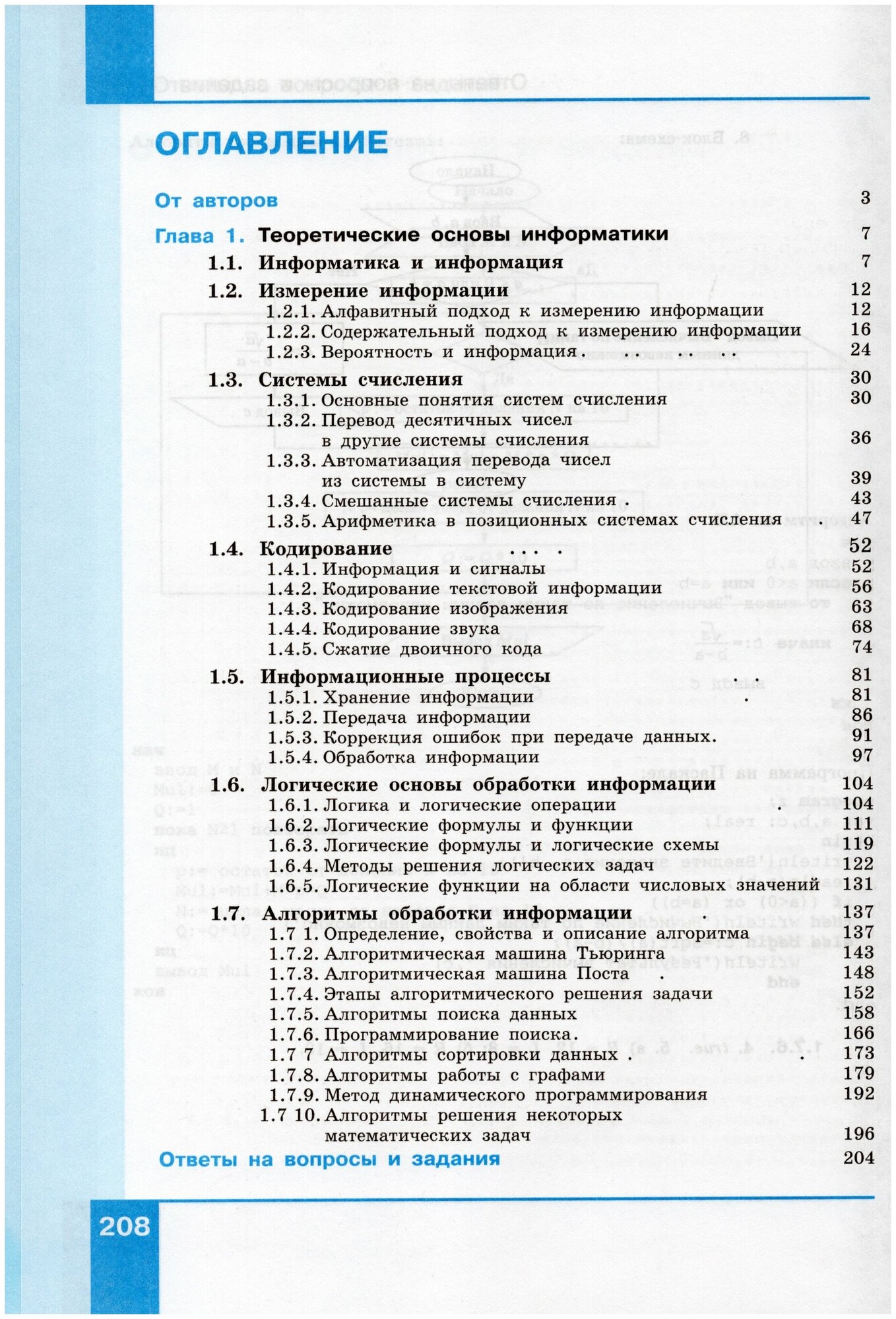 Учебное издание предназначено для изучения курса информатики на углубленном уровне в 10 классах общеобразовательных организаций. Содержание опирается на изученный в 7-9 классах курс информатики для основной школы и разработано в соответствии с Федеральным государственным образовательным стандартом для среднего общего образования и примерной основной образовательной программе среднего общего образования. Рассматриваются теоретические основы информатики, аппаратное и программное обеспечение компьютера, современные информационные и коммуникационные технологии. Учебное издание входит в учебно-методический комплект для 10-11 классов, включающий также практикум, примерную рабочую программу и методическое пособие.