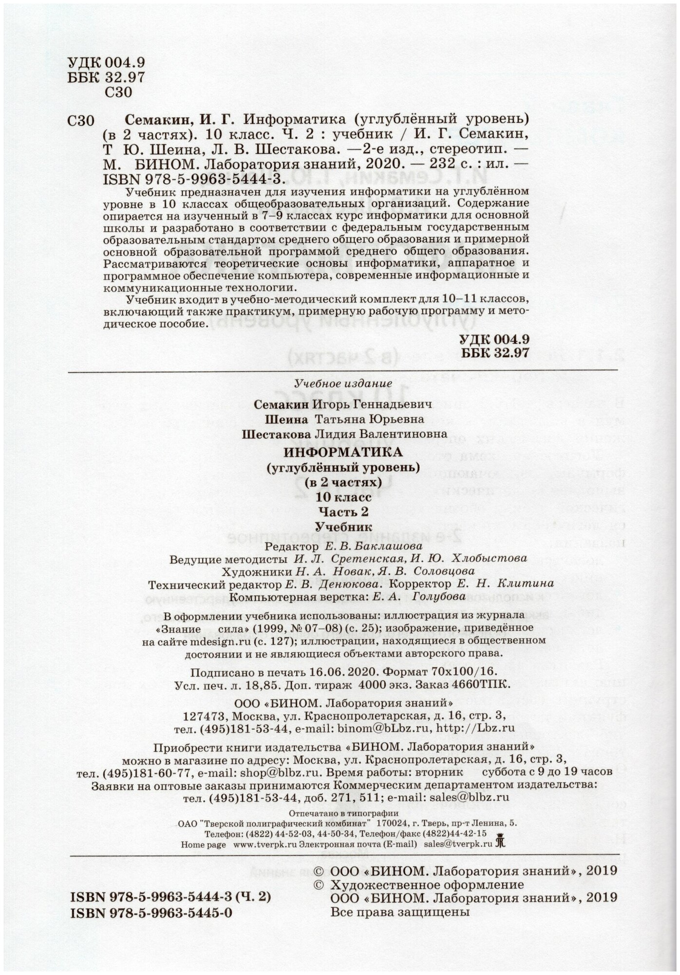 Информатика. 10 класс. Углубленный уровень. в 2-х частях. Учебник. (ФГОС). (Игорь Геннадьевич Семакин); БИНОМ. Лаборатория знаний, 2020