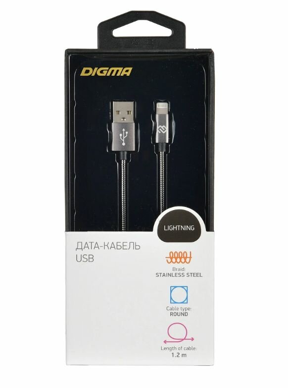Кабель Digma отличается высокой прочностью и прослужит вам долгие годы.