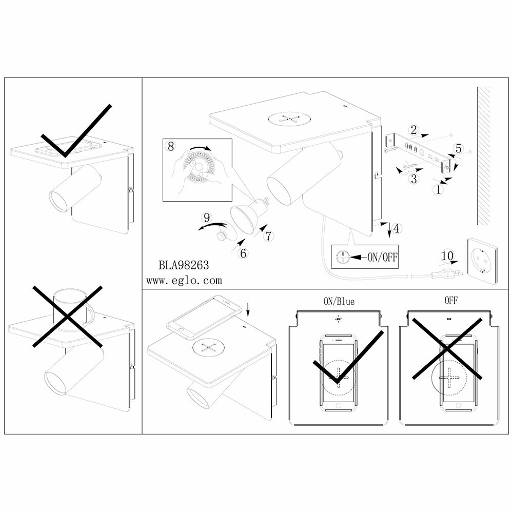 - Настенное бра с зарядкой для телефона Eglo серии ciglie - 98263