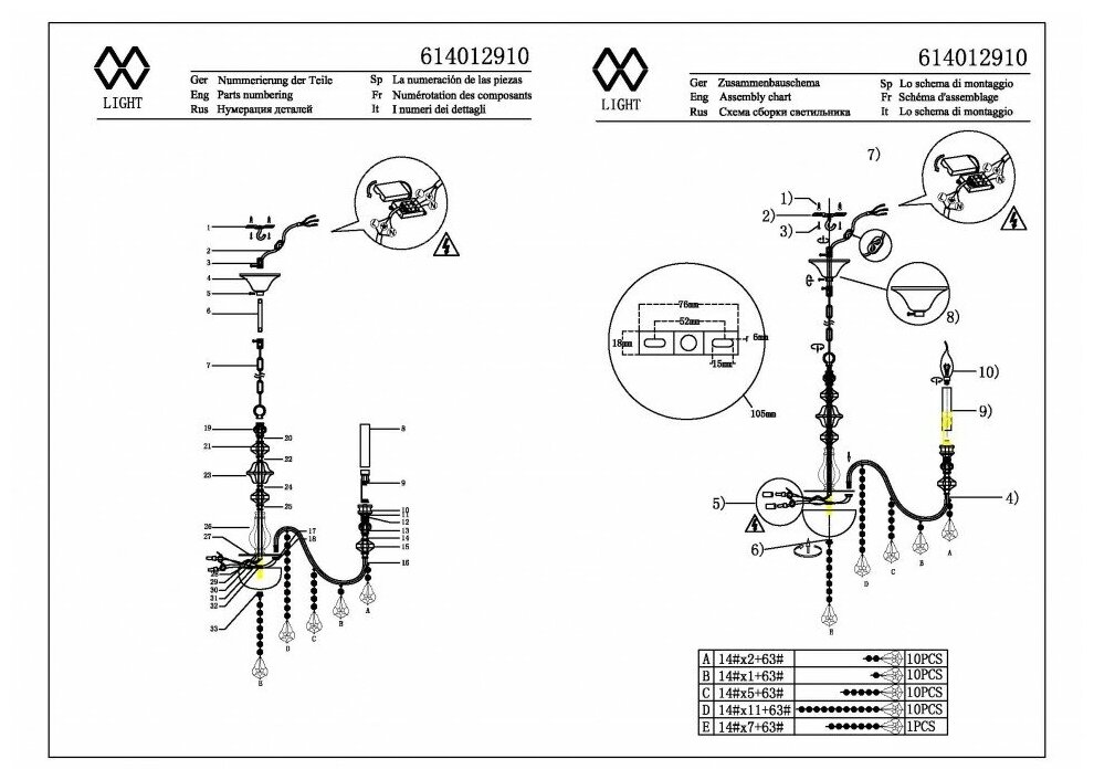 | Количество плафонов | 10 шт |
