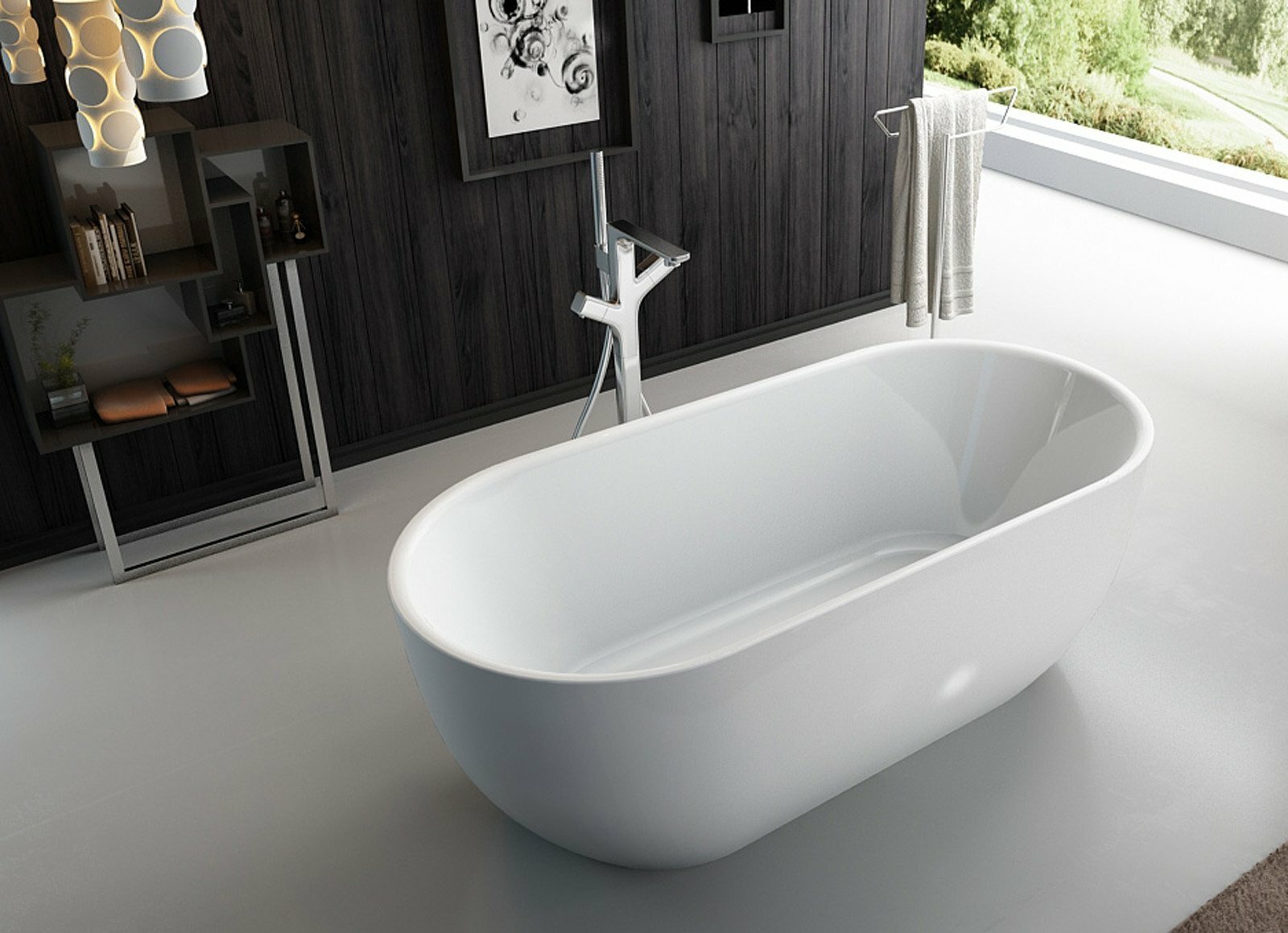 1500x750x570 мм. Отдельностоящая, овальная акриловая ванна в комплекте со сливом-переливом цвета хром.