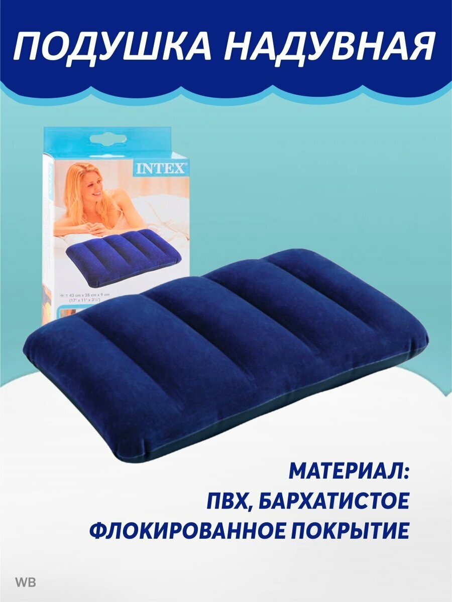 Подушка флокированная Intex пригодится и на природе, и в дороге, и дома. Благодаря своим компактным размерам в сдутом состоянии она не создаст никакого дискомфорта во время хранения и транспортировки. Покупка данной модели правильный шаг в направления Вашего комфорта.