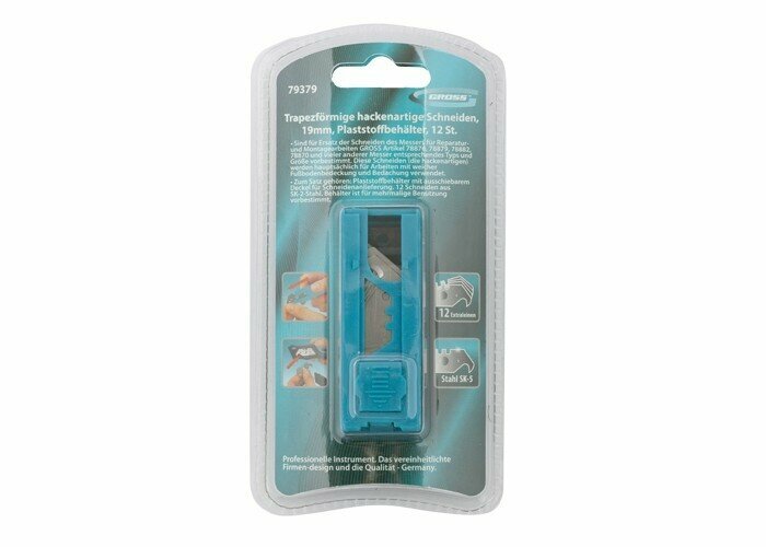 Нож строительный Gross 79379 19мм трапециевидные, крючкообразные, пластиковый кейс 12шт