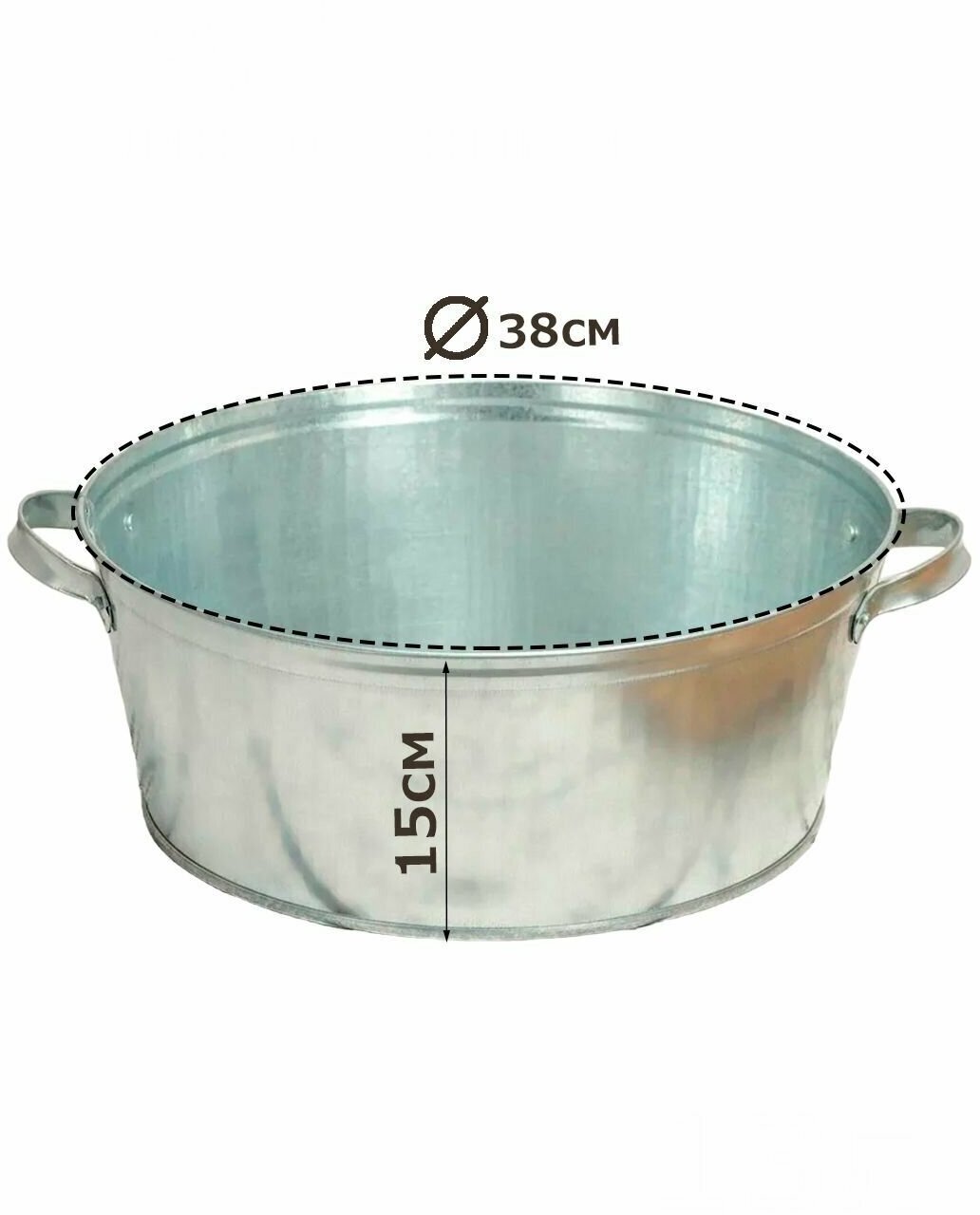 | Применение продукта | Оцинкованный таз пригодится дома, в саду или на стройке. В нем можно стирать, кипятить воду, хранить и переносить сыпучие материалы — грунт, песок, удобрения. Таз будет полезен при сборе урожая. |