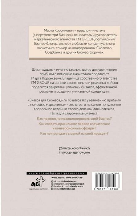 Виагра для бизнеса: 16 шагов по увеличению прибыли с помощью маркетинга (Марта Коронкевич); Издательство АСТ, 2020