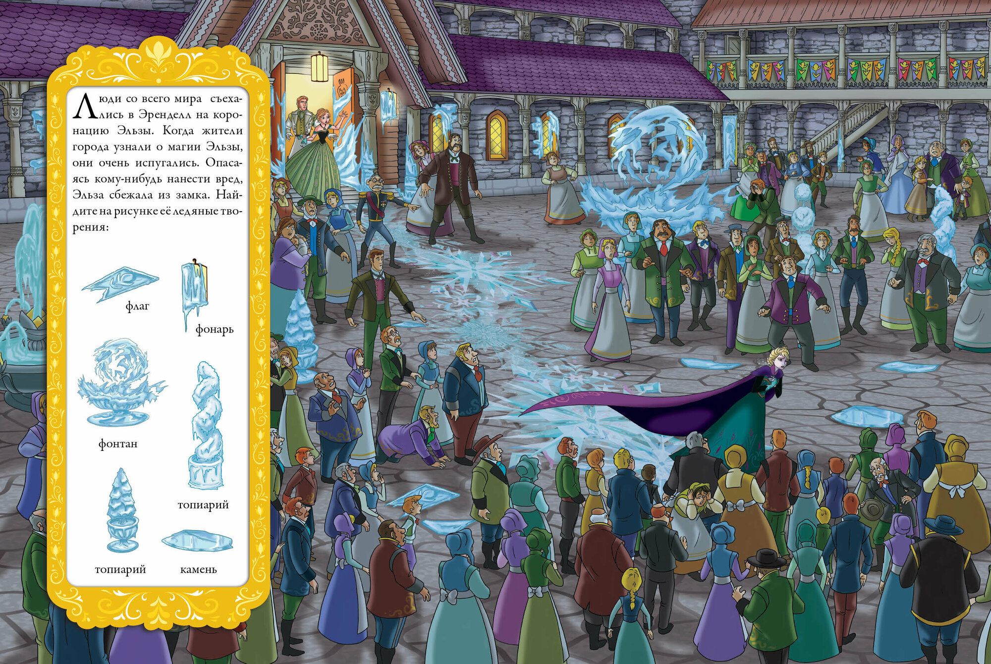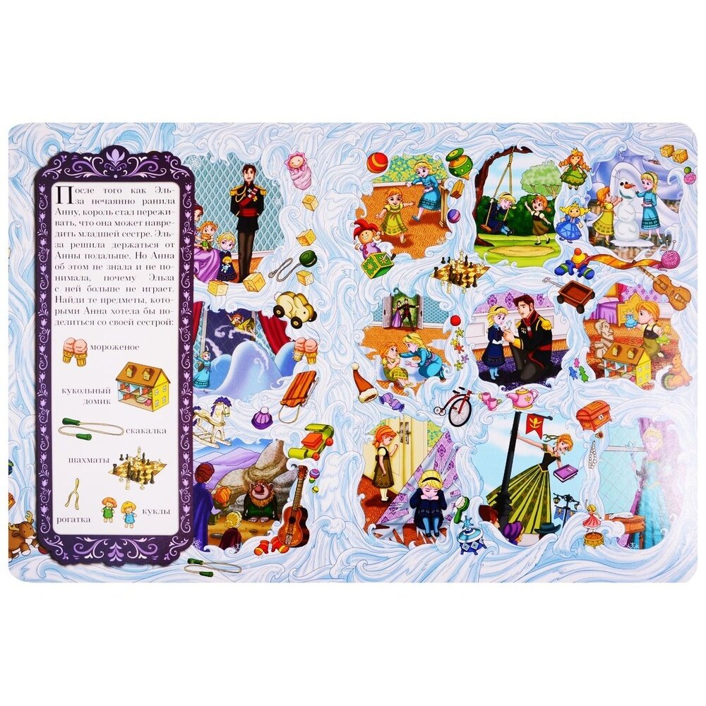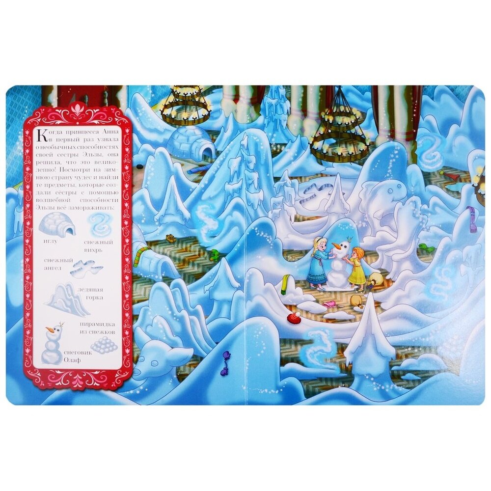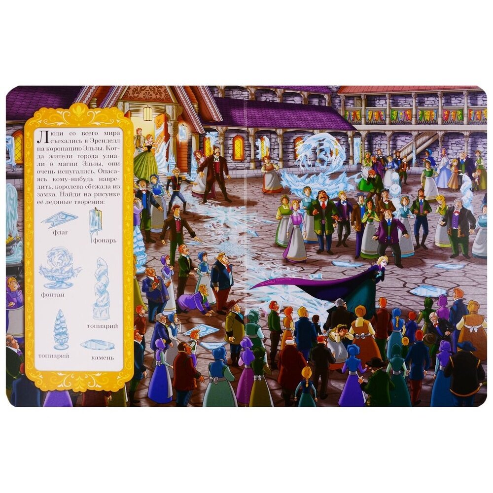 Виммельбух «Холодное сердце» по сюжету популярного одноименного мультипликационного фильма «Холодное сердце».