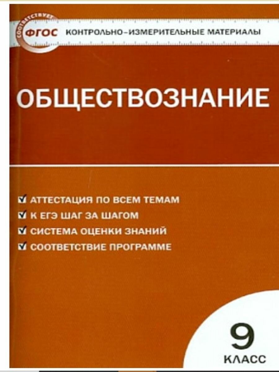 Представленные контрольно-измерительные материалы (КИМы)для 9 класса тематически сгруппированы, соответствуют требованиям школьной программы по обществознанию. Использование КИМов позволит не только оценить усвоение учащимися материала по теме, но и постепенно подготовить их к современной тестовой форме проверки знаний, что пригодится при выполнении заданий ЕГЭ. В конце издания предложены ключи к тестам.