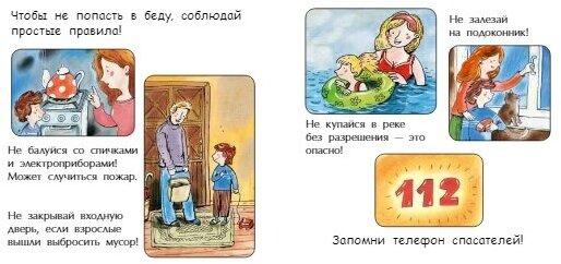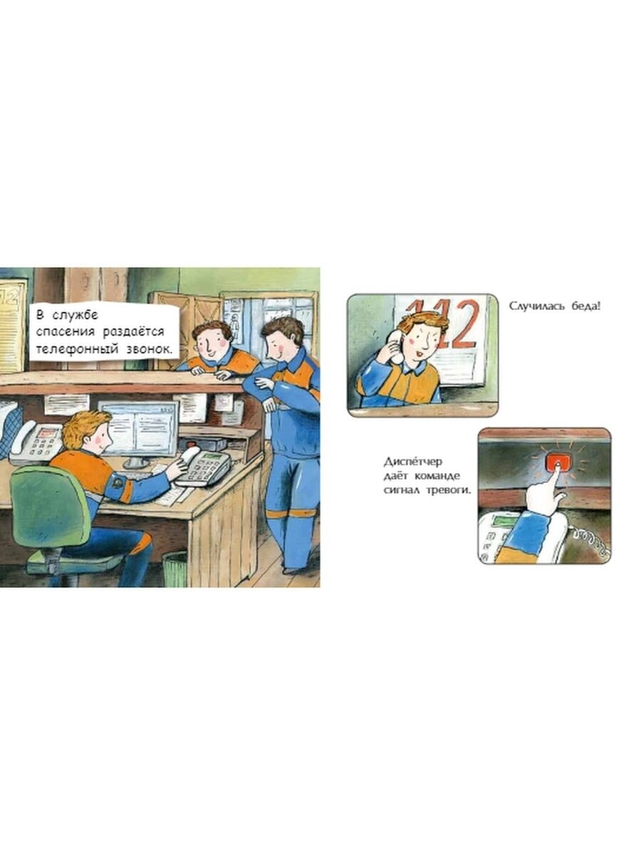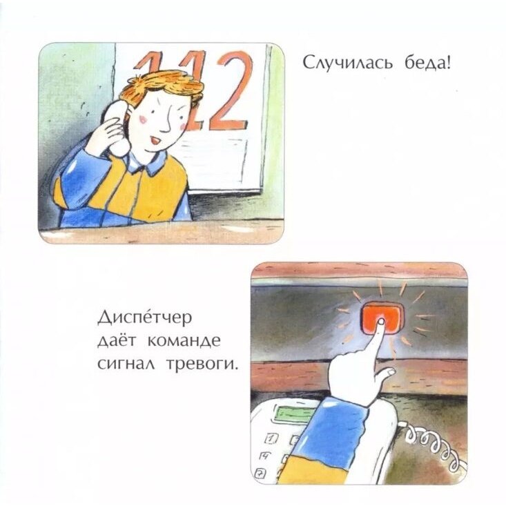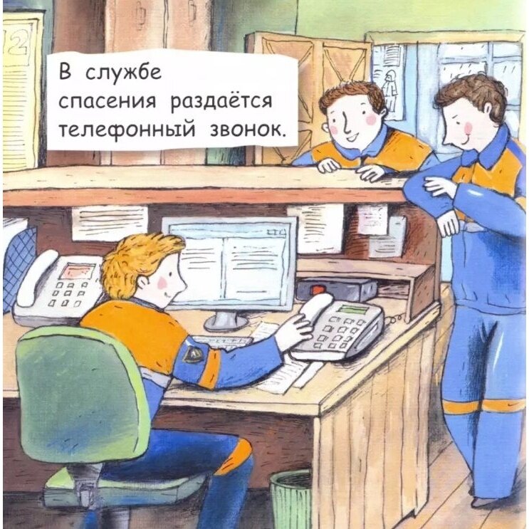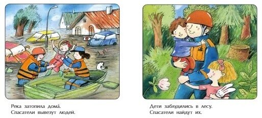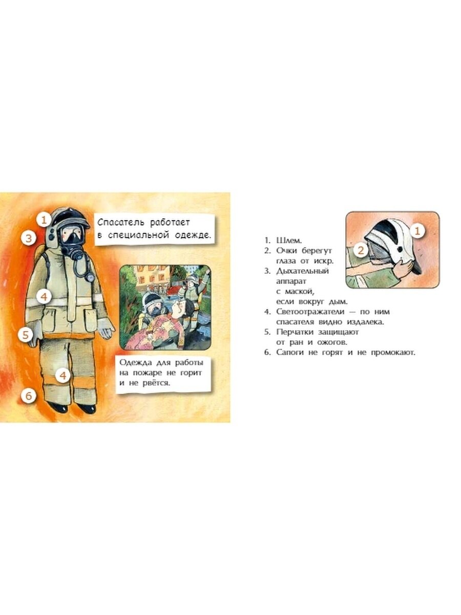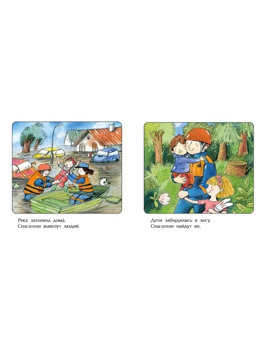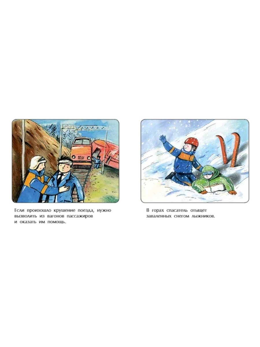 По содержанию коротко и ясно, просто перечисление пунктов. Это как книжка-шпаргалка для родителя, когда будет рассказывать про профессию спасателя.
