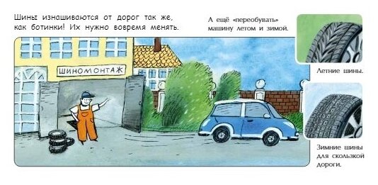 Эта книга непременно станет любимой у мальчишек! Здесь не только детально показано устройство, но и рассказывается о том как ухаживать за машиной и какие бывают знаки дорожного движения.