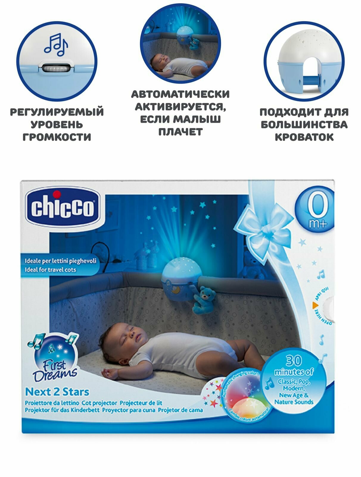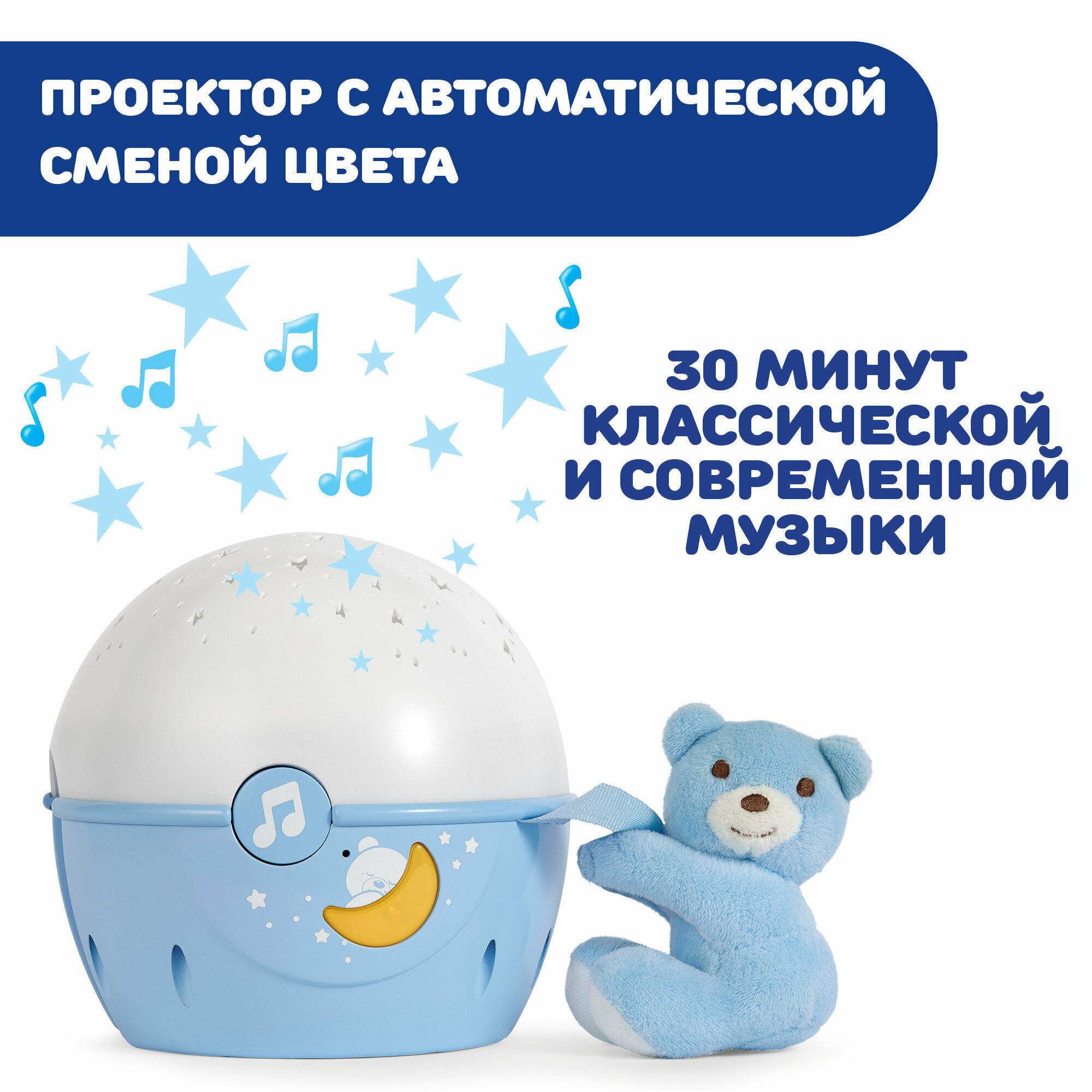 Игрушка-проектор Chicco "Звёзды" предназначена для детей с рождения. Богатый выбор мелодий от классической до звуков природы. Проектор может светить мягким светом, а также показывать красивые звёзды, создавая на потолке звёздное небо. Есть функция ночника. Игрушку-мишку можно отсоединить.
