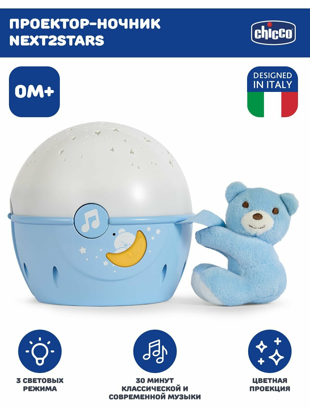 Ночник-проектор Chicco Next 2 Stars голубой (07647.20)