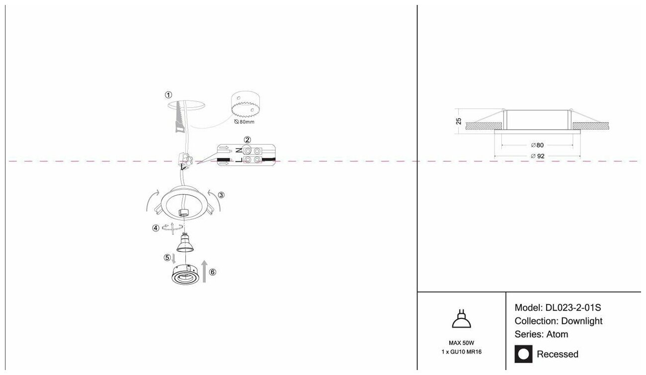 Встраиваемый светильник Atom Maytoni Atom DL023-2-01S