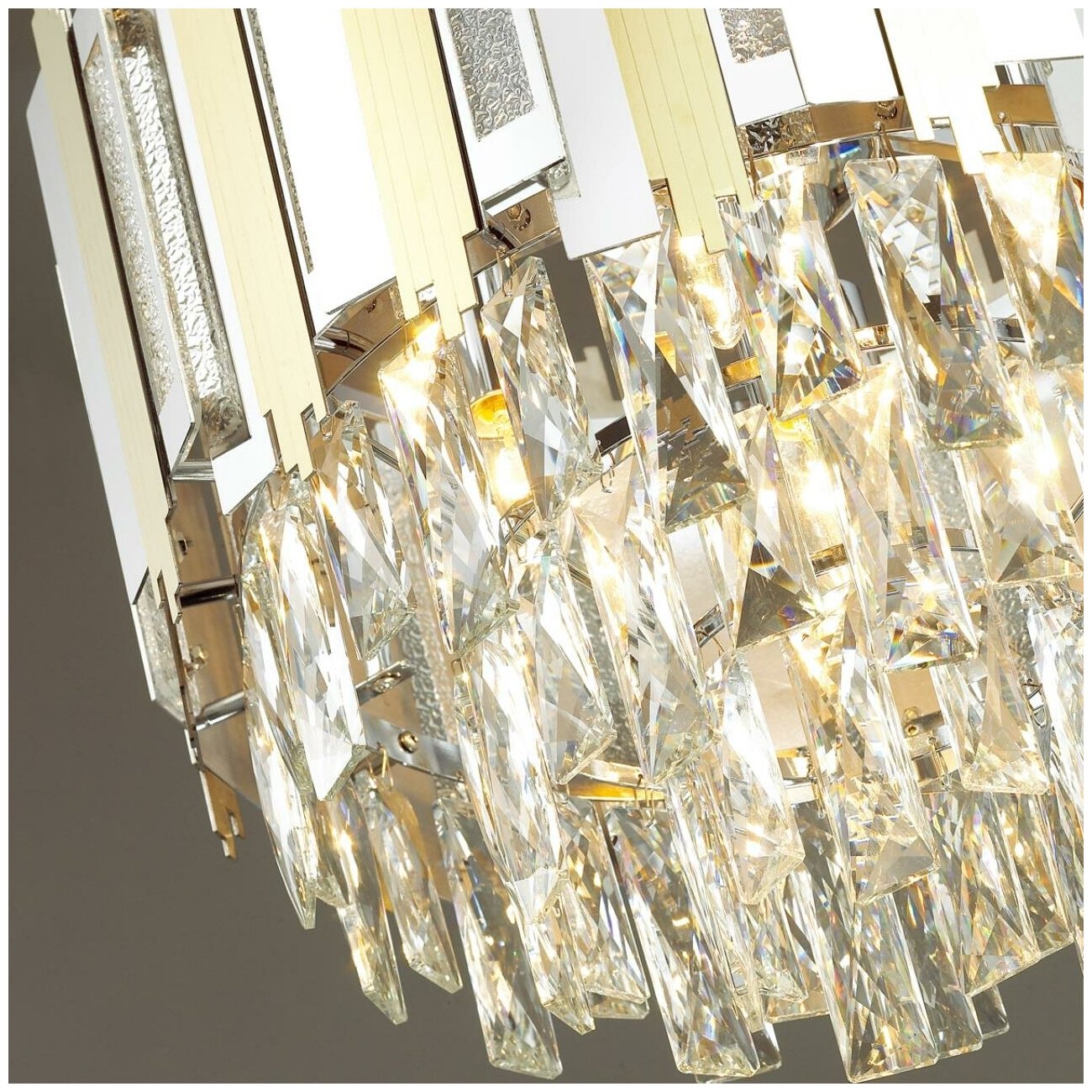 Серия Runa - элегантная серия из подвеса-люстры и бра. Пластины биколоре – хром/золото и декоративные стеклянные вставки образуют уникальный абажур модели. Мощный каскад центральной части образуют хрустальные подвески. Игра света и переливы металла придают моделям нарядность и праздничность.
