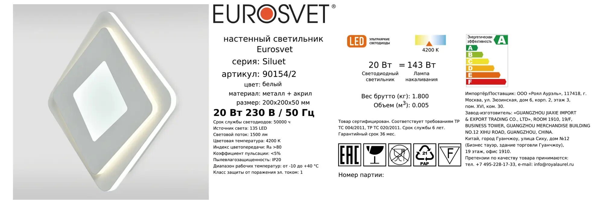 На сегодняшний день товар «Настенный светильник светодиодный Salient 90154/2 1500 лм нейтральный белый свет цвет белый Eurosvet (90154-2)» можно купить с кешбеком в 1 магазине: Яндекс.Маркет
