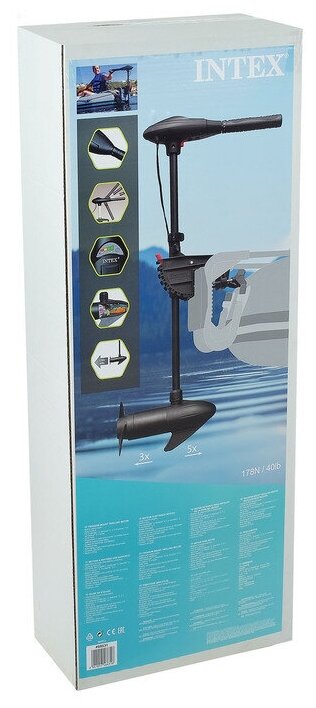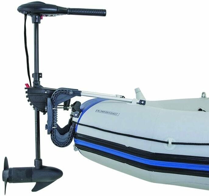Электромотор Intex - отличная модель, представитель класса электромоторов для надувных лодок. Эта модель имеет ряд полезных характеристик, от наличия встроенного счетчика уровня заряда аккумулятора и регулирования глубины погружения до выдвижного румпеля. Отдельная гордость модели - скорости. Их тут целых восемь: пять - вперед, три - назад. Регулировка скорости - за счет переключения передачи (как вперед, так и назад).