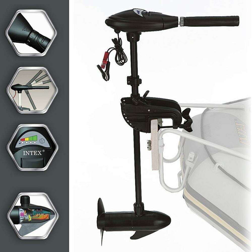 Купил этот электромотор 3 года назад. Каждый выезд на природу-рыбалку брал с собой. Мотор хороший несмотря, что Интекс. Энергопотребление не большое, аккумулятора на 100 а/ч хватает на 3 дня отдыха, правде если не ставить максимальную скорость. Для тролинга хватает и 1 скорости, доже хотелось бы и поменьше. 3 скорость вполне прилична для движения по воде.