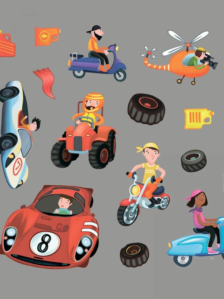 Гонкам не хватает драйва? Исправить это можете только вы! У вас есть 40 ярких наклеек с удивительными гоночными машинами и самыми смешными болельщиками.