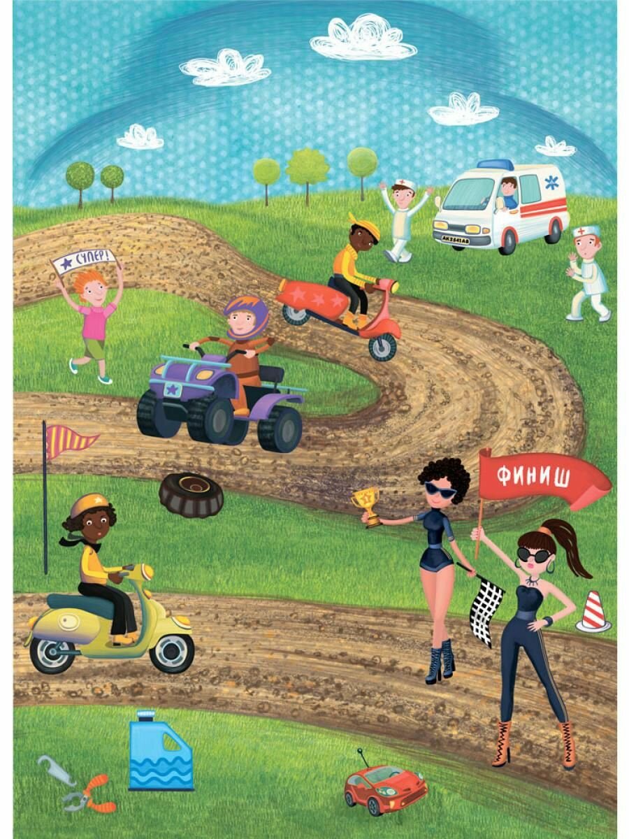 Приключения в наклейках. Гонки (Мельникова Е. (худ.)); Ранок, 2018