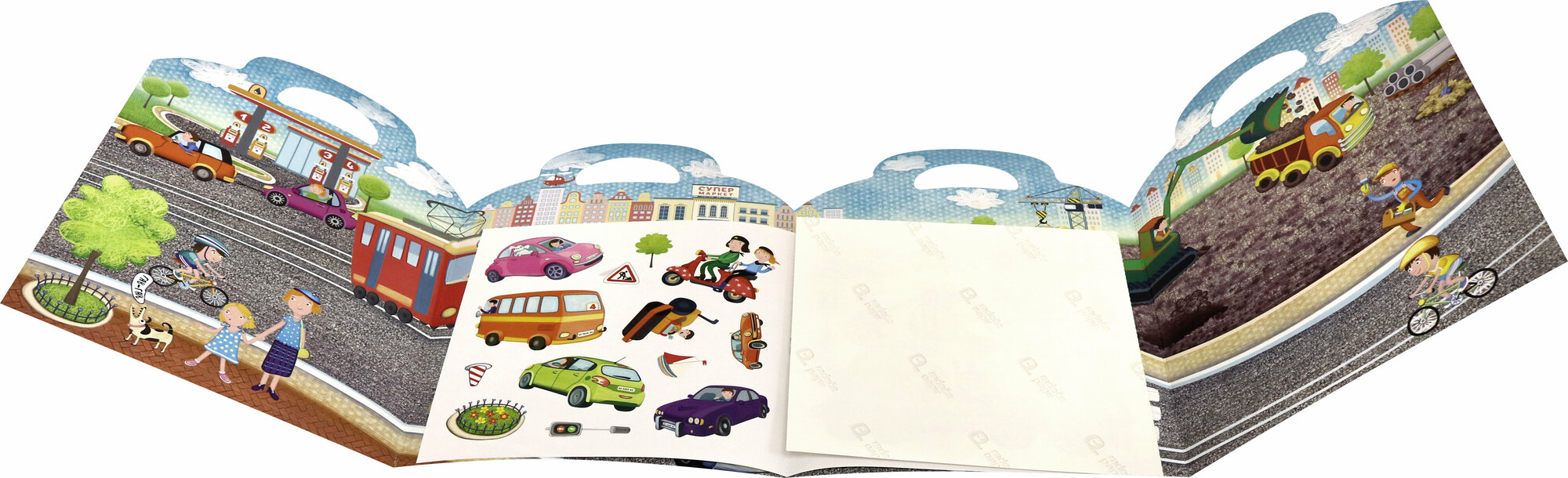 Городская улица совсем пустует. Оживить её сможете только вы! Ведь у вас есть 38 ярких наклеек с разными машинами и самыми весёлыми жителями города.