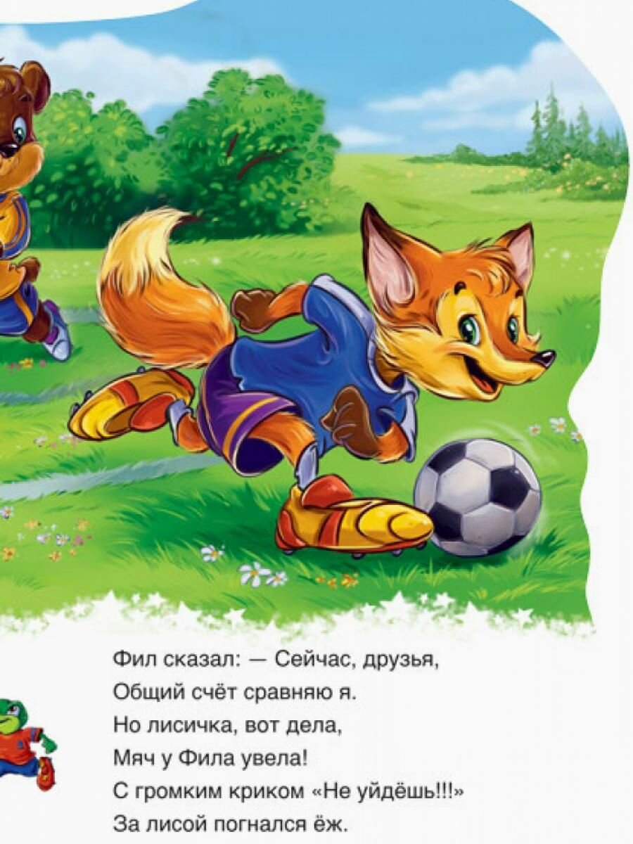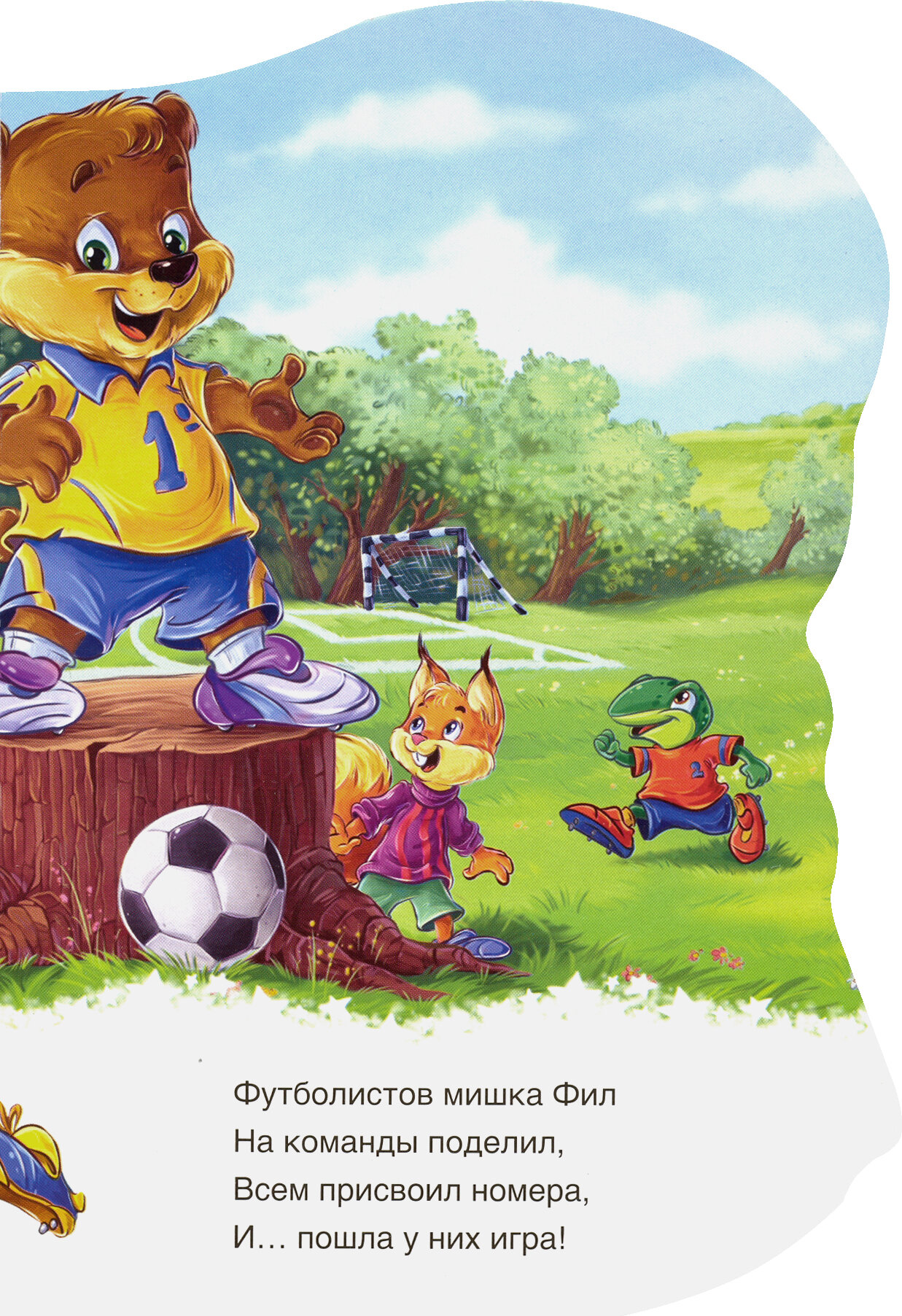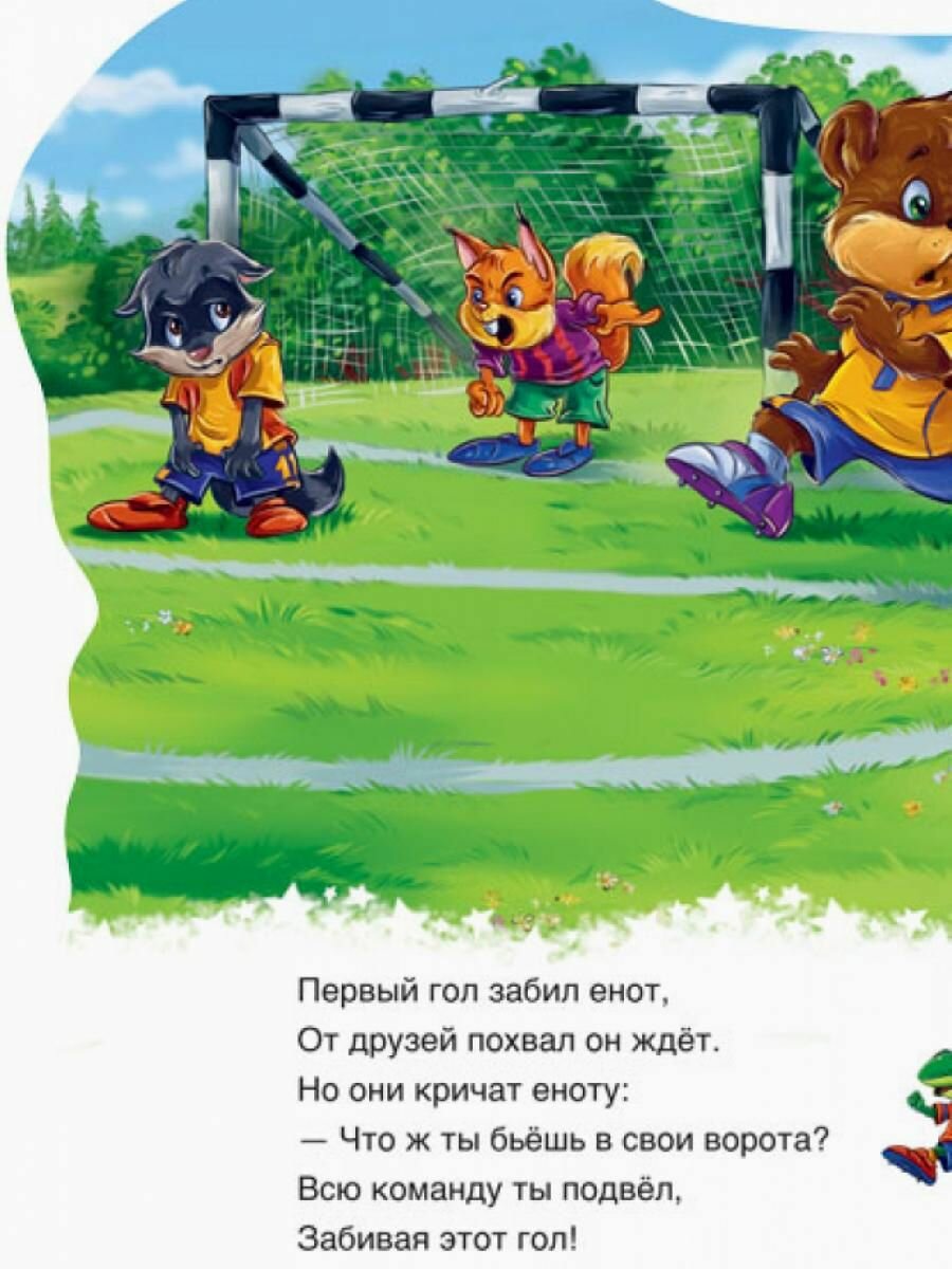 Книга понравилась и мне, и ребёнку. Стихи красивые, очень динамичные. Иллюстрации очень красивые и цвет не "вырви глаз", приятно смотреть. Очень хорошо прорисованы эмоции героев, особенно понравились белка-вратарь и сурок-судья. Покупали из этой серии книгу с утенком, там картинки очень яркие и не такие красивые, как в этой книге про медведя.