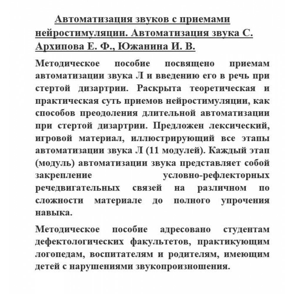 Автоматизация звуков с приемами нейростимуляции. Автоматизация звука С (Е. Ф. Архипова); Интермедиатор, 2020