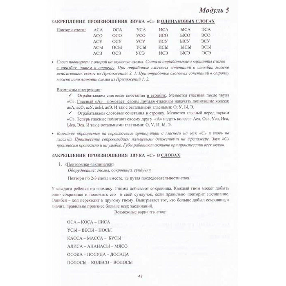 Каждый этап (модуль) автоматизации звука представляет собой закрепление условно-рефлекторных речедвигательных связей на различном по сложности материале до полного упрочения навыка.