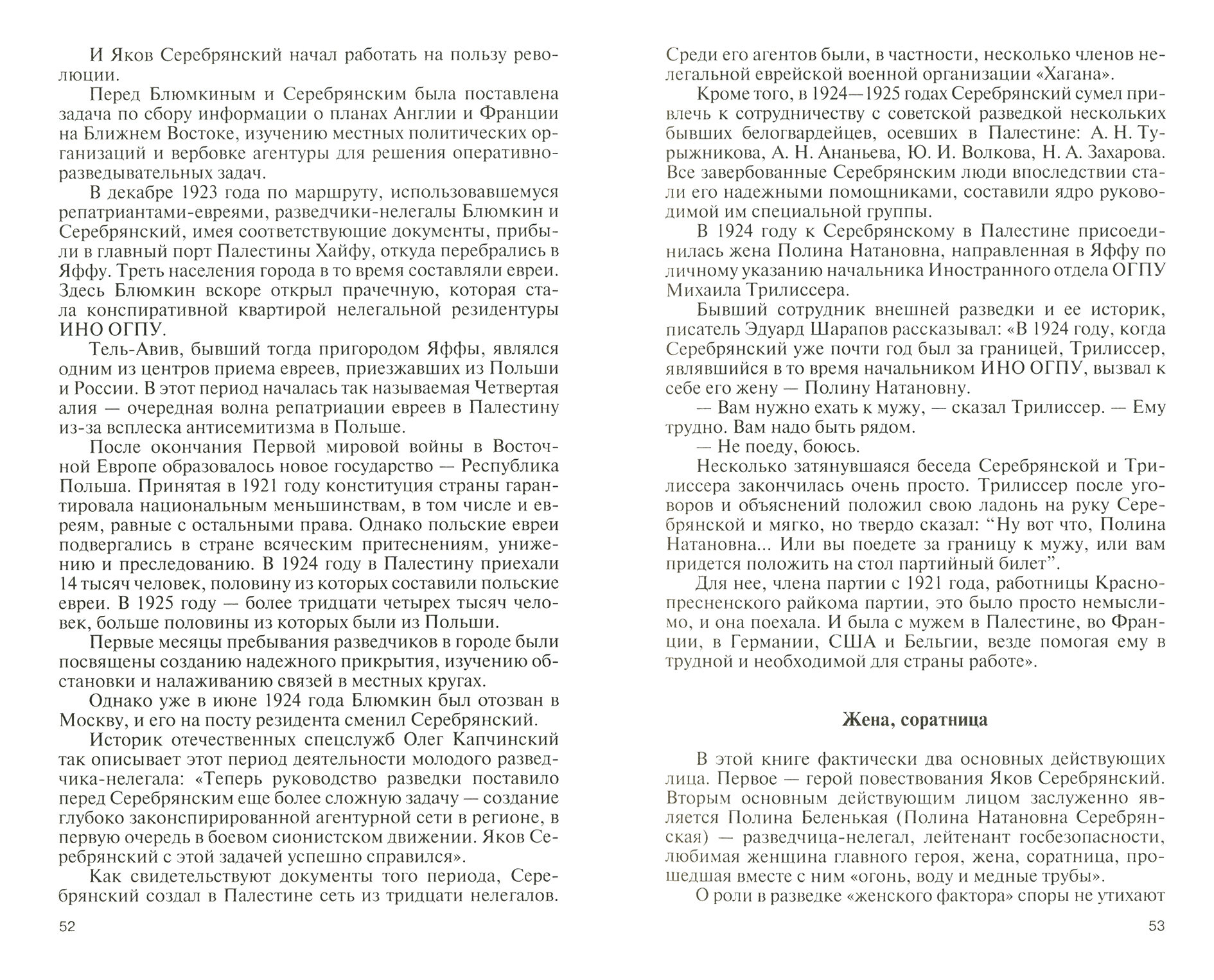 Спасибо автору за отличную книгу. Вообще про этого человека, выдающегося советского разведчика - нелегала, каким был Яков Серебрянский писать очень трудно, даже для полковника КГБ, сотрудника Кабинета истории внешней разведки Владимира Антонова ибо понятно, что про героя он знает гораздо больше, но увы читателям это сказать нельзя до сих пор, ибо те операции, которыми руководил Яков Серебрянский и как разведчик - нелегал и как начальник Спец группы НКВД СССР ( группа Яши, как её называли) до сих пор строго засекречены, увы в силу специфики профессии, чем знаменитее разведчик тем про него известно очень мало, а жаль.....но огромное спасибо Владимиру Антонову за то, что он хотябы малую толику жизни великого разведчика предал гласности.