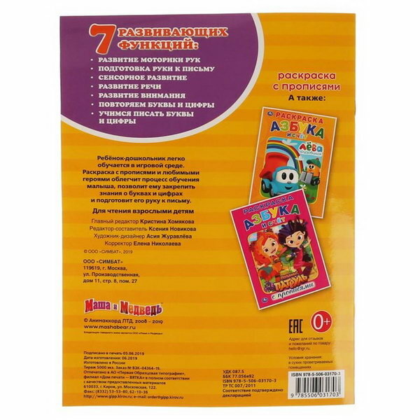 Маша и Медведь. Азбука и счет с прописями (Ксения Новикова, К.Ю. Новикова); СИМБАТ ООО, 2019