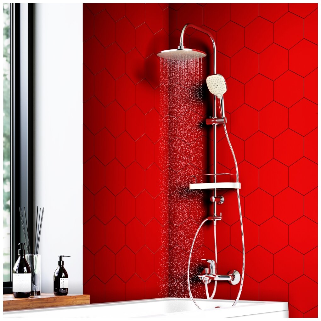 | ВКоробке | Душевая стойка - 1 шт. Верхний душ - 1 шт. Лейка - 1 шт. Держатель для душа - 1 шт. Шланг - 1 шт. Полочка - 1 шт. Инструкция - 1 шт. |