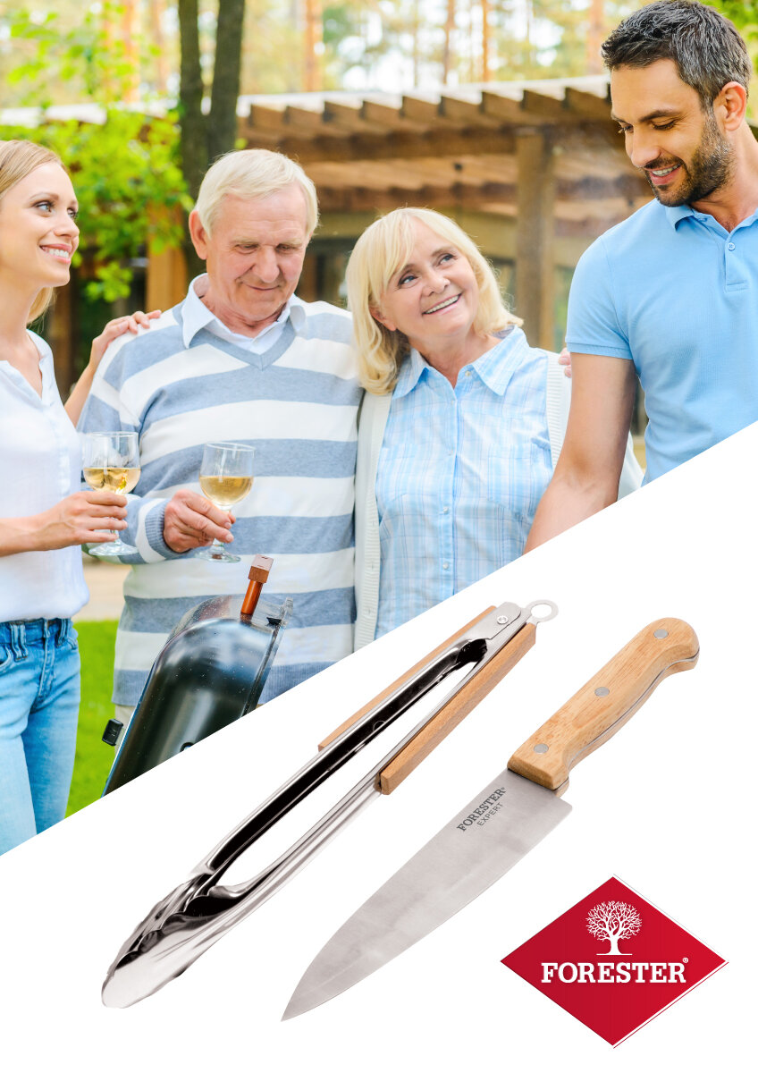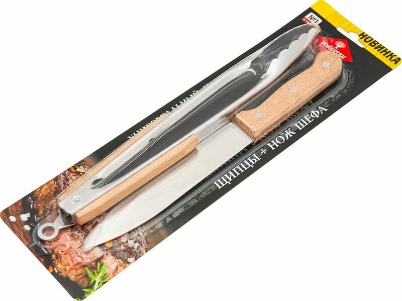 - НАБОР ДЛЯ ГРИЛЯ, ЩИПЦЫ+НОЖ ШЕФА FORESTER, BC-772