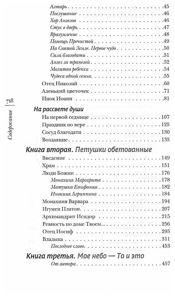 Этот сборник состоит из трех книг - "На рассвете души", "Петушки обетованные", "Мое небо - То и это". Автор вводит читателя в мир размышлений о смысле жизни и обретении внутренней опоры. Он знакомит нас с примерами подвижничества нашего времени, маленьких и больших чудес, помощи Божией тем, кто стремится очистить свою душу и возвысить дух на избранном пути.