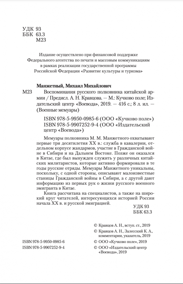 Воспоминания русского полковника китайской армии (Манжетный Михаил Михайлович); Кучково поле, 2019