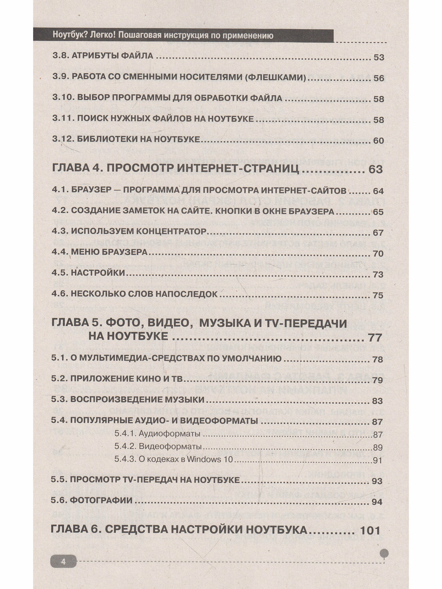 Вы узнаете ВСЕ: как настраивать ноутбук в Windows 10; как запускать программы и работать с файлами; как настроить просмотр видеофайлов, TV-программ и воспроизведение музыки для вашего удобства; как пользоваться видеосвязью на ноутбуке с помощью Скайпа (Skype ) - это позволит вам связаться и увидеть "вживую" ваших родственников, друзей и знакомых в любой точке нашей планеты; как выходить в Интернет и пользоваться электронной почтой; как установить и настроить антивирусы, чтобы обезопасить свой ноутбук от вирусов и вредоносных программ; как работать с документами Word и Excel и многое другое.