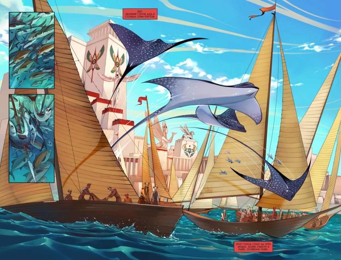 Прекрасное творение Анастасии Ким полное юмора, отличных боевых сцен и залипательных пейзажей. Сочная картинка сделаная в тандеме с замечательным колористом Ладой Акишиной притягивает своей детализацией и объемом.