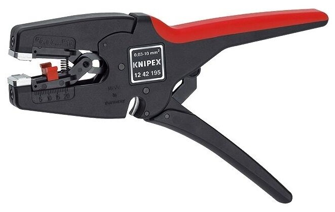 Автоматический инструмент для снятия изоляции KNIPEX MultiStrip 10 - профессиональный прибор, не требующий проведения тонкой настройки для организации правильного функционирования. Прибор имеет полностью автоматическую настройку на все одножильные, многожильные и тонкожильные провода со стандартной изоляцией. Глубина резки ножа самостоятельно адаптируется к диаметру провода, при этом не повреждая его. Плавный ход рукояток существенно снижает энергоемкость работы. Корпус выполнен из пластика, усиленного стекловолокном, что обеспечивает надежную защиту от повреждений и увеличивает срок службы. Блок запасных режущих кромок доступен как опция.