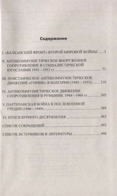 В книге рассмотрен феномен вооруженного сопротивления части населения против установления послевоенного устройства в странах Балкан. Работу предваряет обширная глава о событиях Второй мировой войны на Балканах, послуживших прологом к последующим событиям. В эти годы в Югославии, Румынии, Албании и Болгарии повстанцами были антикоммунисты, а в Греции партизанскую войну вела местная компартия. Немаловажную роль в усилении повстанчества играло и иностранное вмешательство (Запада на просоветских территориях и СССР и союзников в Греции). Тактика повстанцев и методы антипартизанских действий властей особенно важны для изучения истории партизанской тактики. Книга написана на основании архивных источников и воспоминаний участников событий.