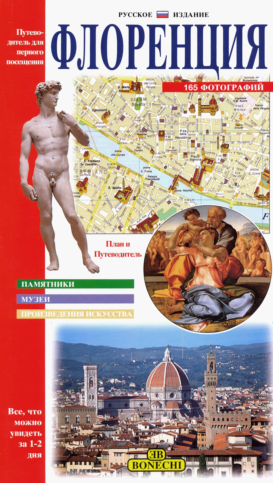 Краткий иллюстрированный путеводитель по столице Возрождения для первого посещения. Содержит 165 цветных фотографий, также прилагается план Флоренции на итальянском языке.