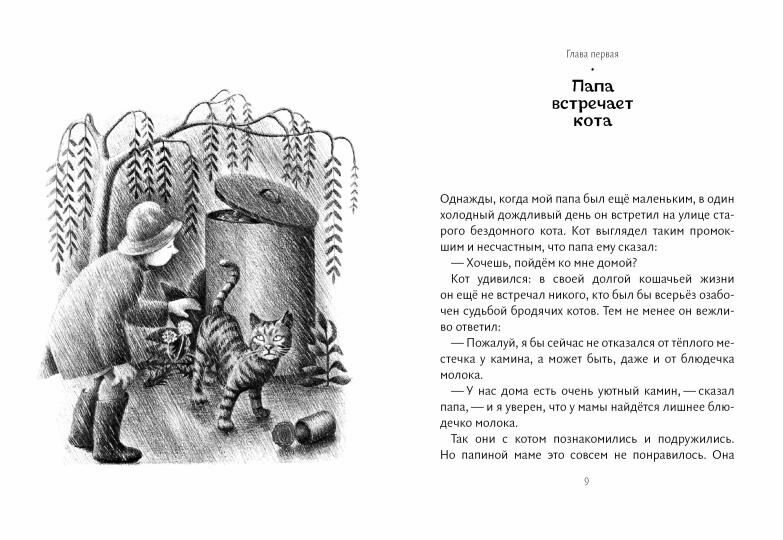 Милая книжка про приключения мальчика, мне, кажется, подойдет для первого самостоятельного чтения, и вообще будет интересна детям лет 5-6. Историю рассказывает папа о самом себе в детстве. Услышав от котенка о заточенном другими зверьми на острове драконе, он хочет его спасти и отправляется в путешествие, во время которого происходит много забавных происшествий. Каждый житель острова особенный, со своим характером, и сюжет, даже мне, сложно было предсказать. Сама книжка небольшая, страниц на 70 крупным шрифтом. Отдельно хочется отметить очень красивые иллюстрации. В общем, рекомендую!