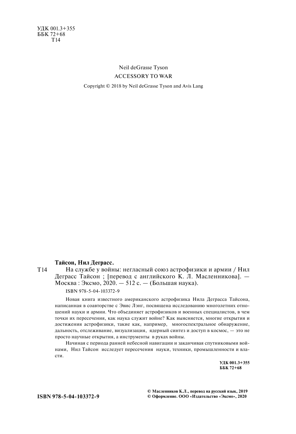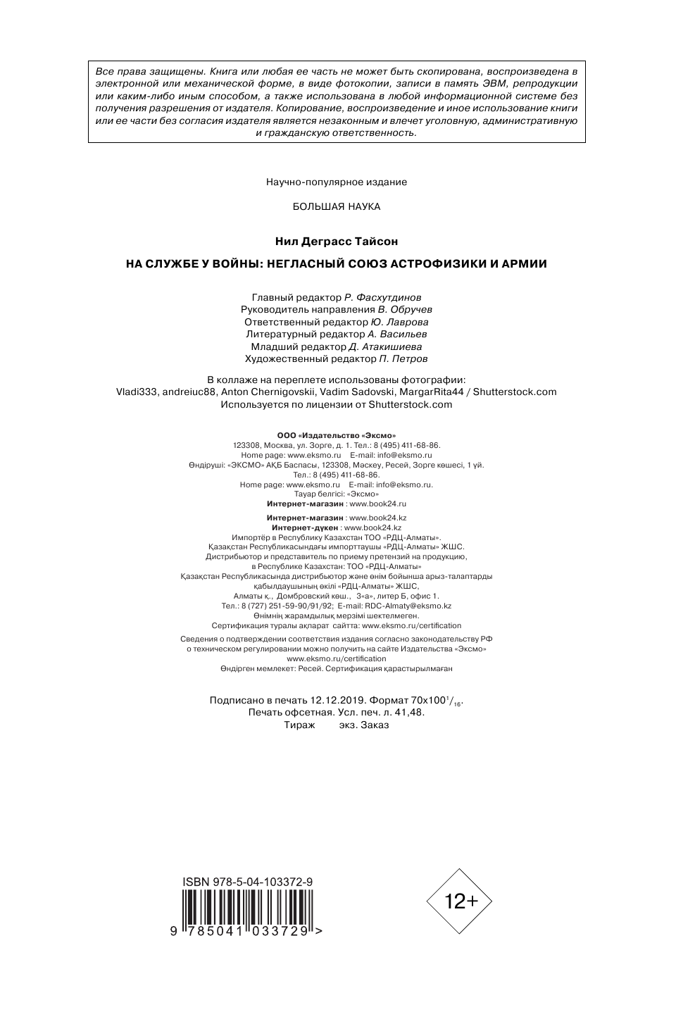 На службе у войны. Негласный союз астрофизики и армии (Тайсон Нил Деграсс); ООО "Издательство "Эксмо", 2020