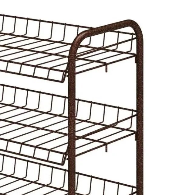 Этажерка для обуви – практичный вариант для обустройства небольшой прихожей. Компактная модель способна вместить наиболее часто используемую сезонную обувь. Конструкция с открытыми решетчатыми полками обеспечивает хорошую циркуляцию воздуха и позволяет не тратить лишние минуты на поиски нужной пары туфель или балеток. Боковые П-образные стойки удобно использовать как ручки при перемещении обувницы во время уборки. Опоры оснащены пластиковыми заглушками для защиты пола от царапин.