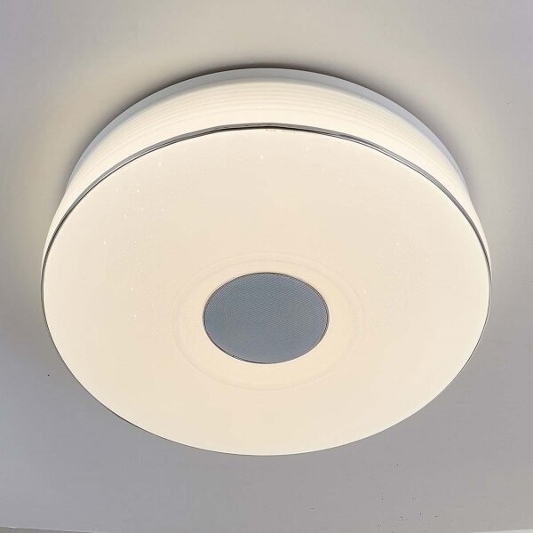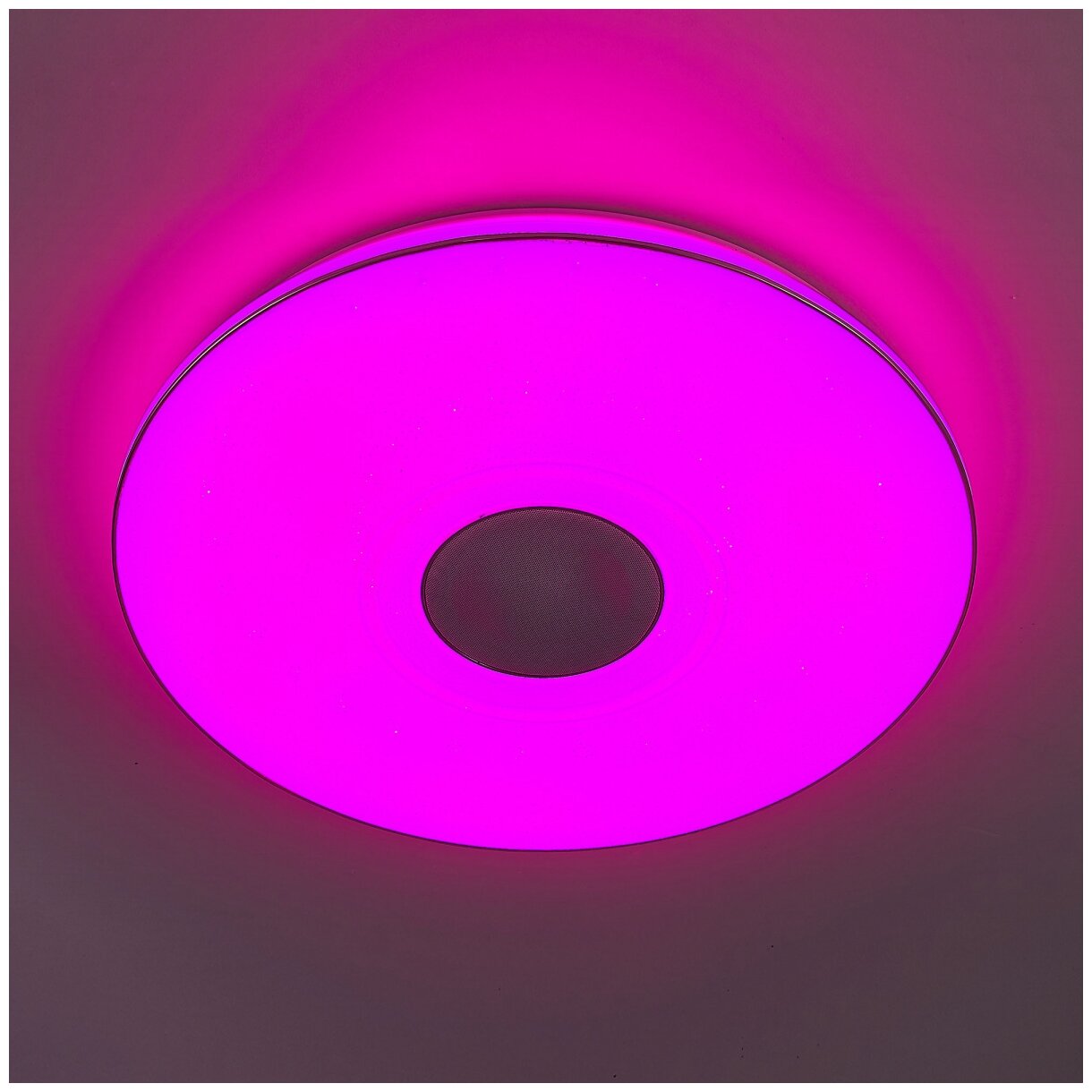 Потолочный светильник светодиодный RGB с Bluetooth-динамиком управлением смартфоном и пультом Light & Music CL703M100 - продукт известной компании Citilux (Италия). Имеет максимальную мощность 100 Вт, освещает площадь до 20 кв. м. Отлично подойдет для таких мест, как гостиная, спальня. Впишется в интерьеры следующих стилей: современный.