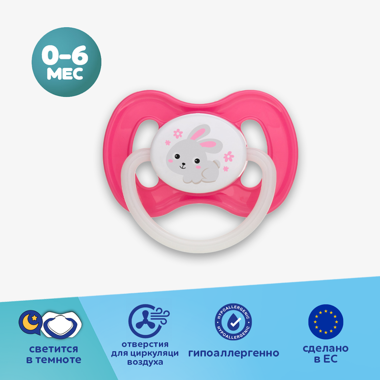 Профилированная форма основания пустышки позволяет ребенку свободно дышать через нос. Отверстия в основании обеспечивают свободное прохождение воздуха и предотвращают раздражение чувствительной кожи ребенка