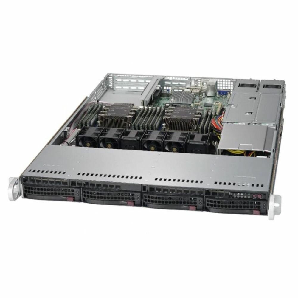 Платформа Supermicro SuperServer форм-фактора 1U обладает широкими возможностями для организации высокопроизводительной и надежной серверной станции. Она поставляется с материнской платой и двумя блоками питания мощностью 750 Вт. Внутри можно установить 2 процессора, до 12 слотов ОЗУ, 4 накопителя типоразмера 3.5 дюйма. Коммуникационные возможности представлены 2 гигабитными разъемами LAN, видеовыходом VGA, портами USB 3.0. Система охлаждения с 4-мя вентиляторами эффективно справляется с отведением тепла от мощных компонентов. Платформа Supermicro SuperServer характеризуется соответствием энергоэффективности платинового уровня и оснащена счетчиками скорости вращения вентиляторов с возможностью корректировки.