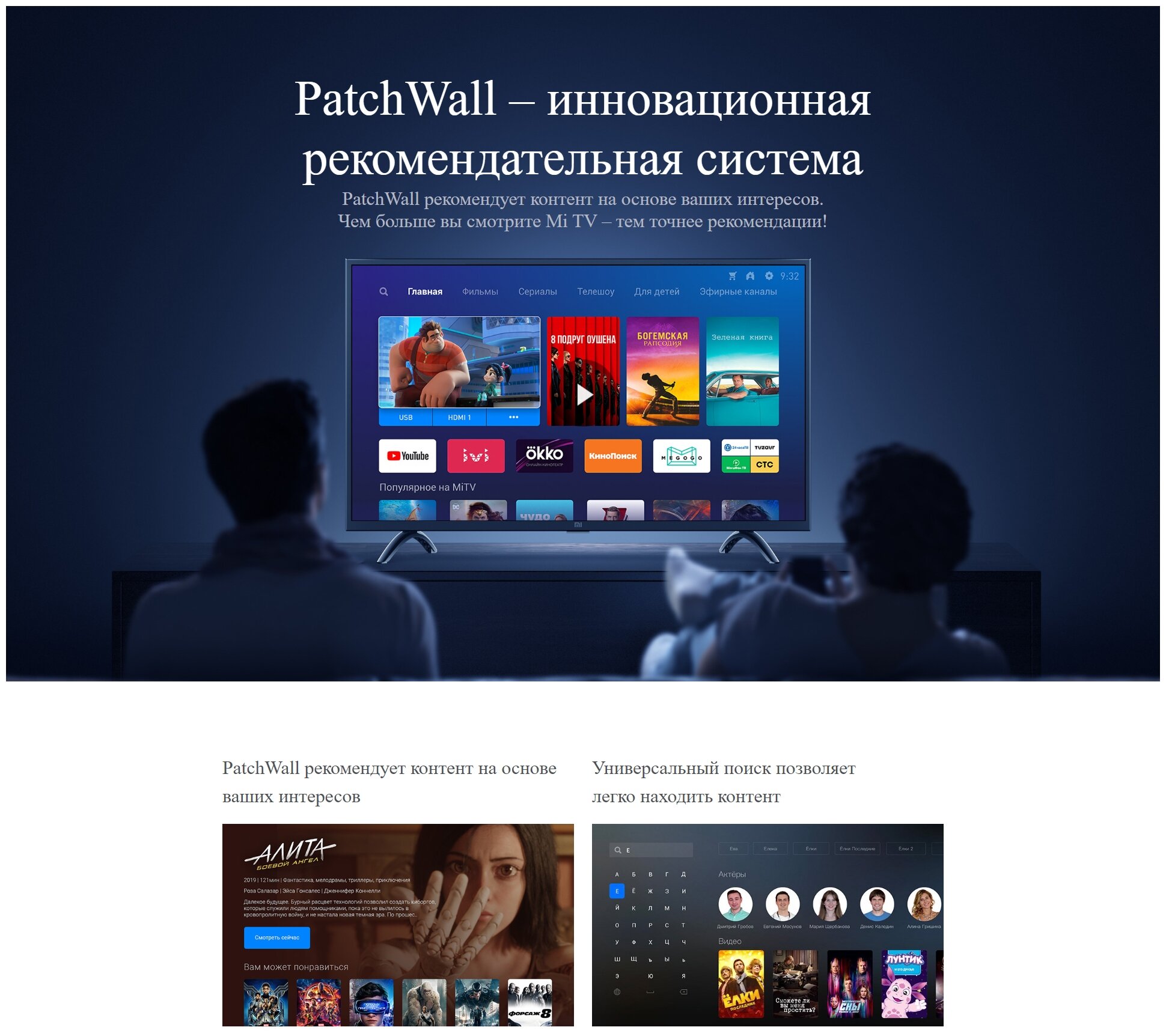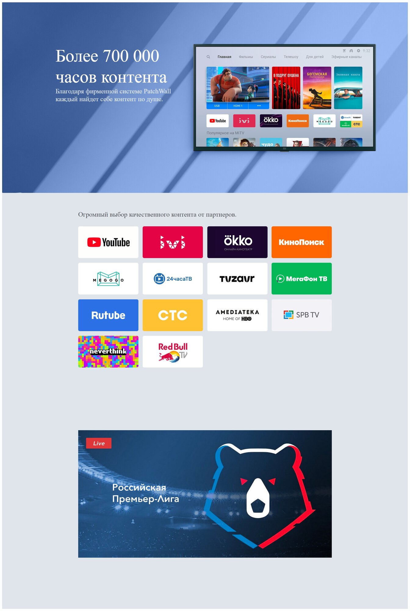 С Smart TV вам будет доступно множество фильмов и сериалов. Инновационная система PatchWall подберет контент для просмотра на основе ваших интересов.