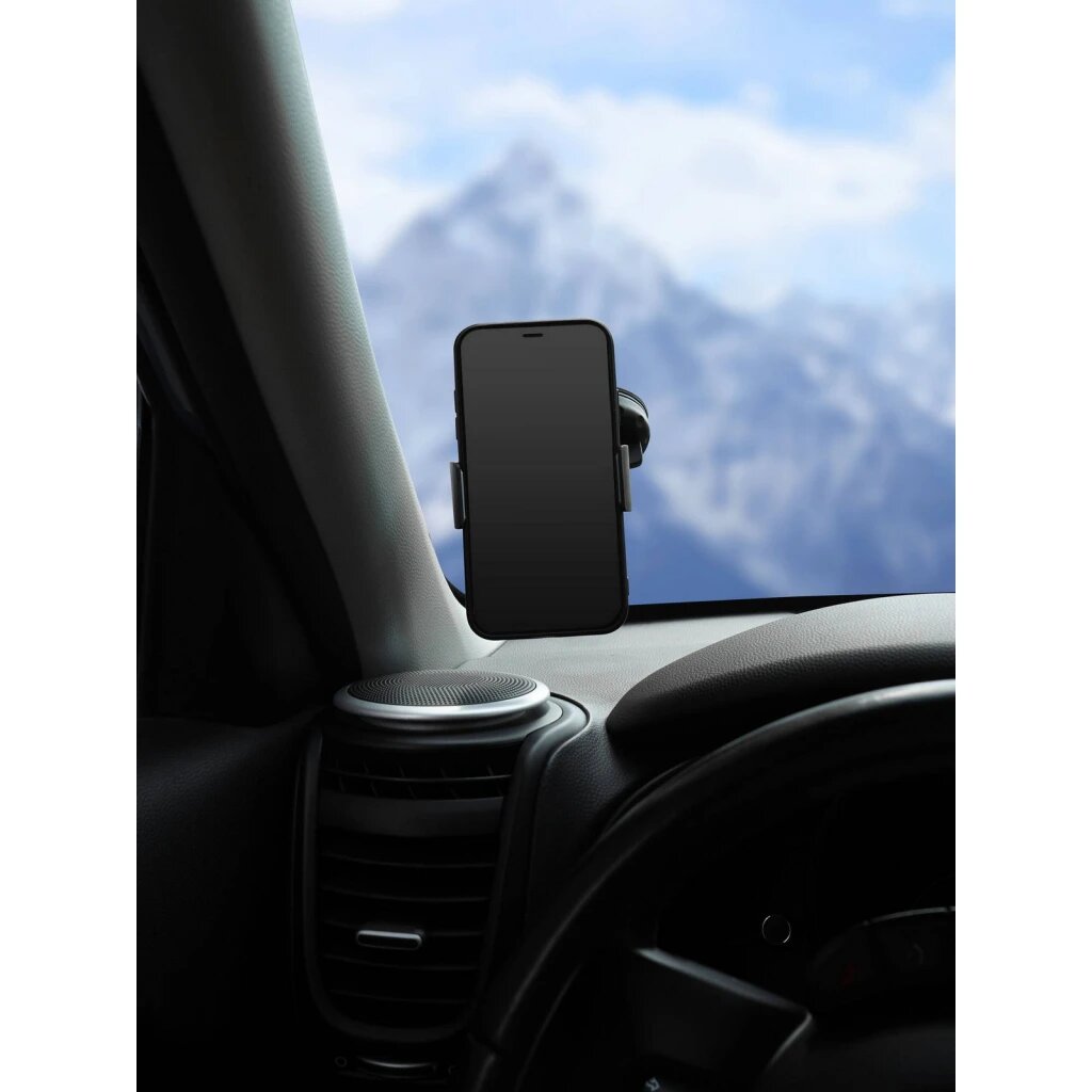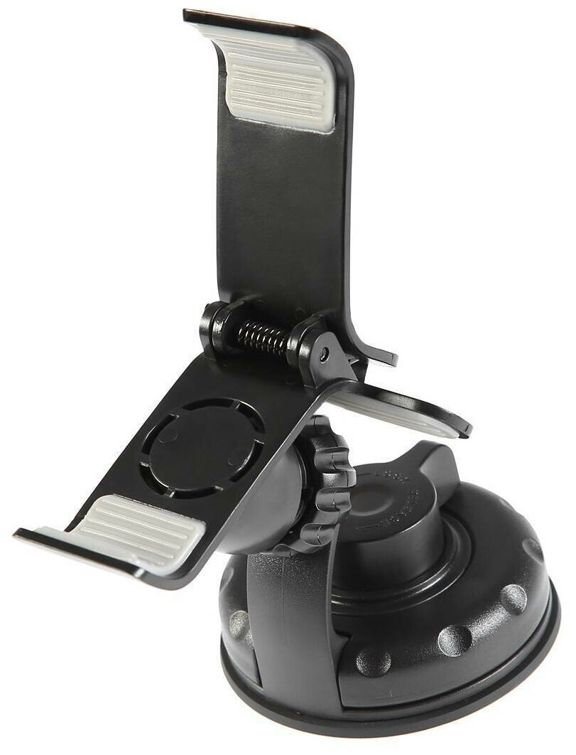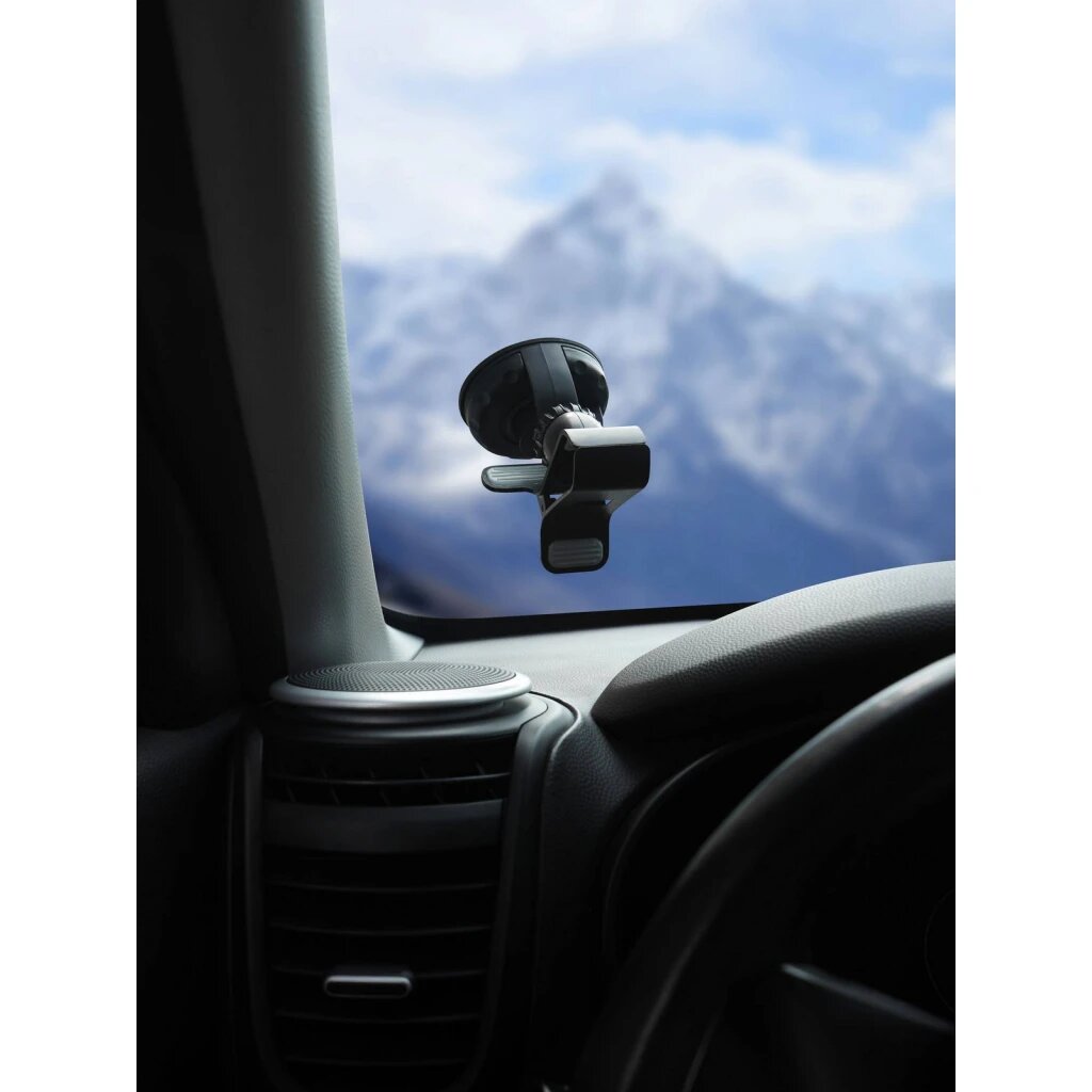 Держатель крепится на поверхность стекла при помощи присоски. Имеет несколько регулировок наклона. Резиновые накладки на прижимах надёжно удерживают устройство от выскальзывания.