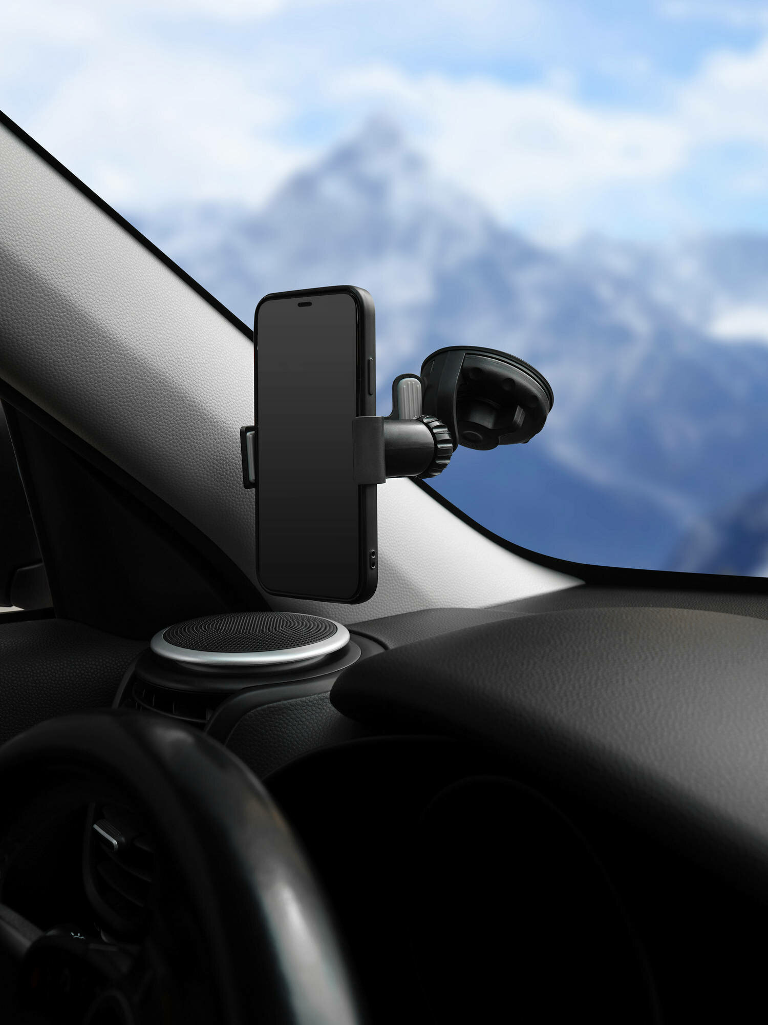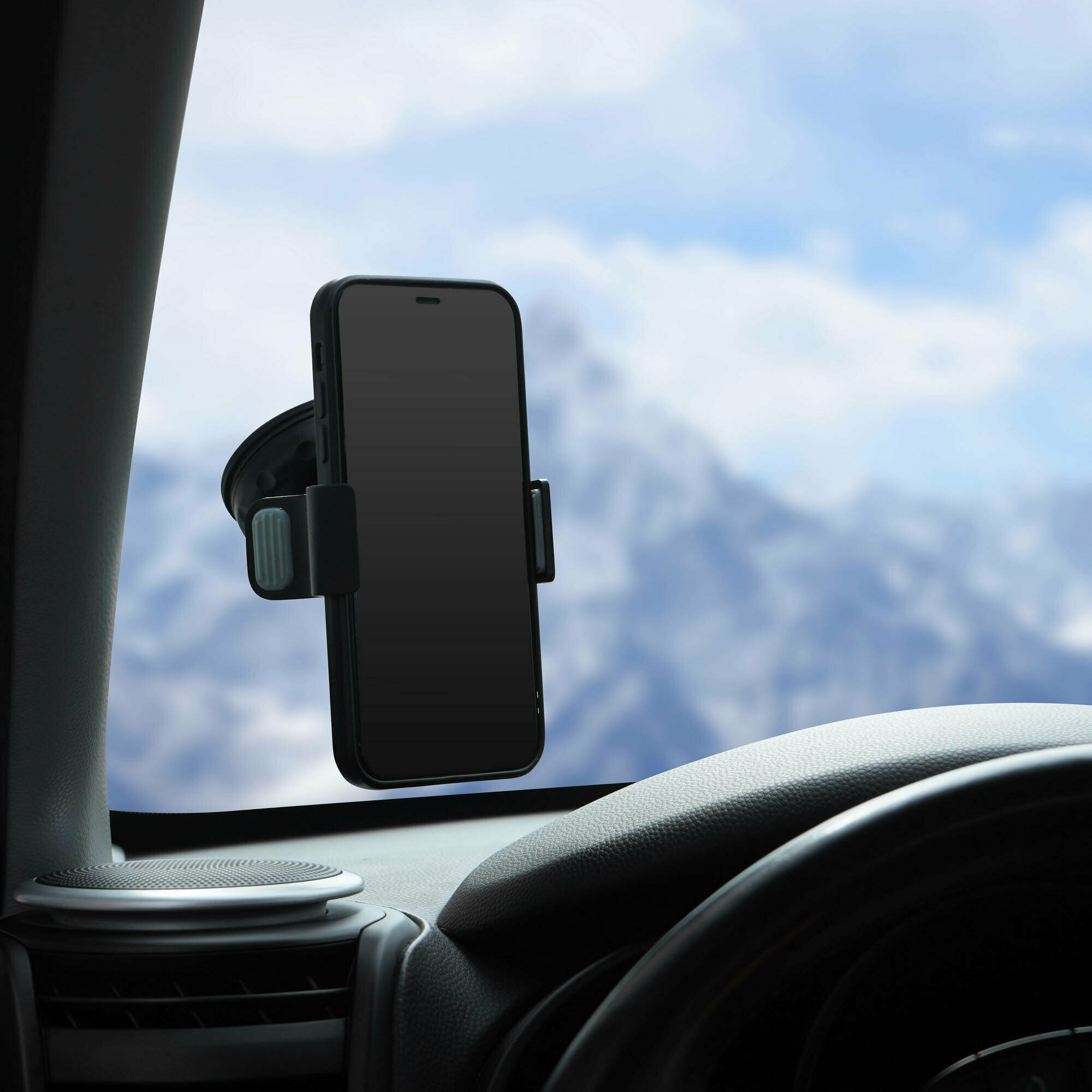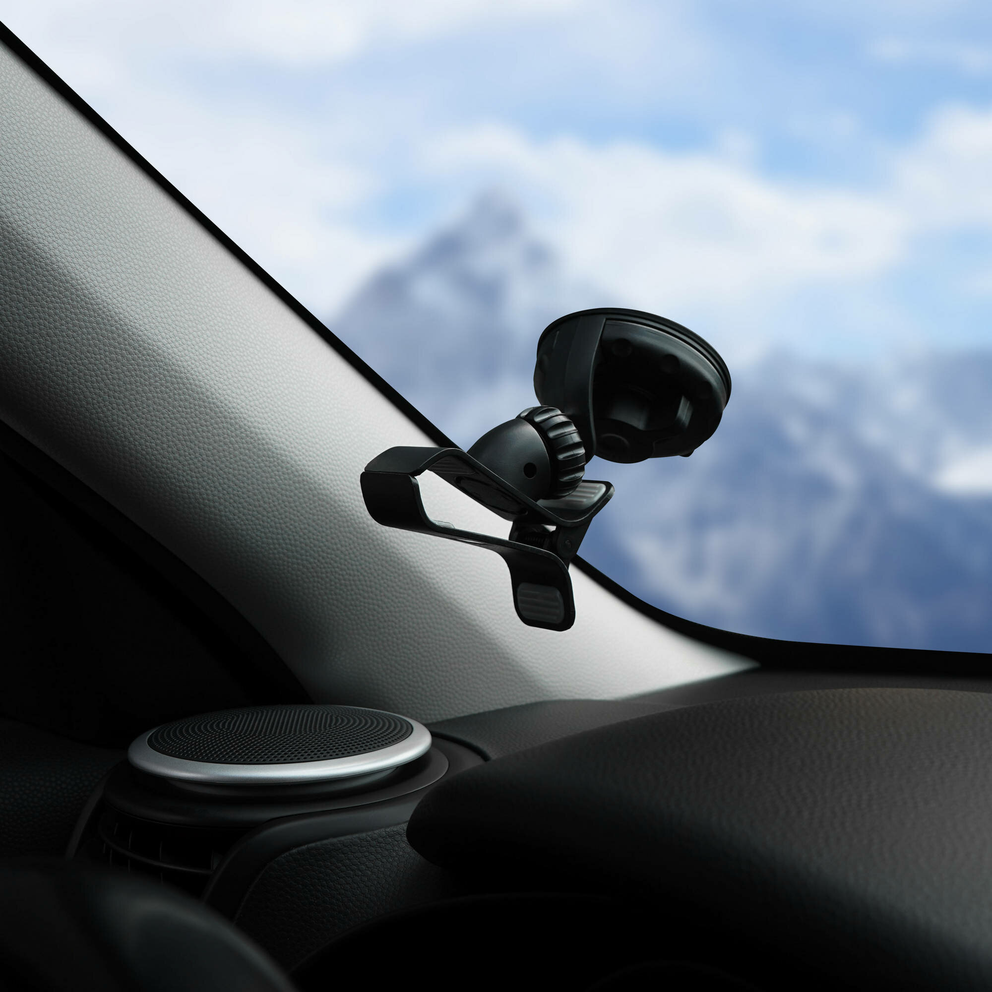 Держатель крепится на поверхность стекла при помощи присоски. Имеет несколько регулировок наклона. Резиновые накладки на прижимах надёжно удерживают устройство от выскальзывания.