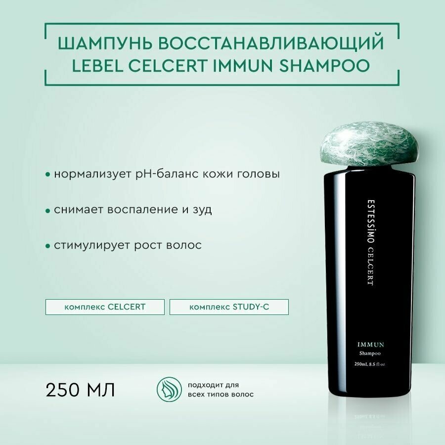 Шампунь восстанавливающий Lebel Estessimo Celcert Meline Immun Shampoo 250 мл 7156еп - восстанавливающий anti-age шампунь для ухода за волосами и чувствительной кожей головы. Действие и особенности: Селективная формула ESTESSiMO CELCERT оказывает направленное комплексное действие на стволовые клетки кожи головы, редактирует структуру и продлевает молодость волос. Нежный шампунь для бережного ухода за чувствительной кожей после химических воздействий и влияния внешней среды. Снимает воспаление и зуд, снижает чувствительность и делает кожу головы здоровой. Стимулирует рост волос.