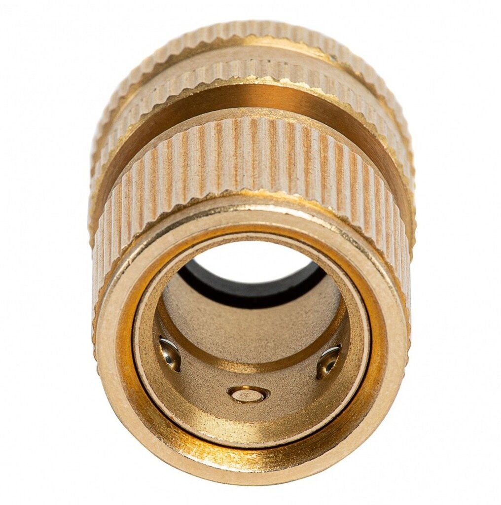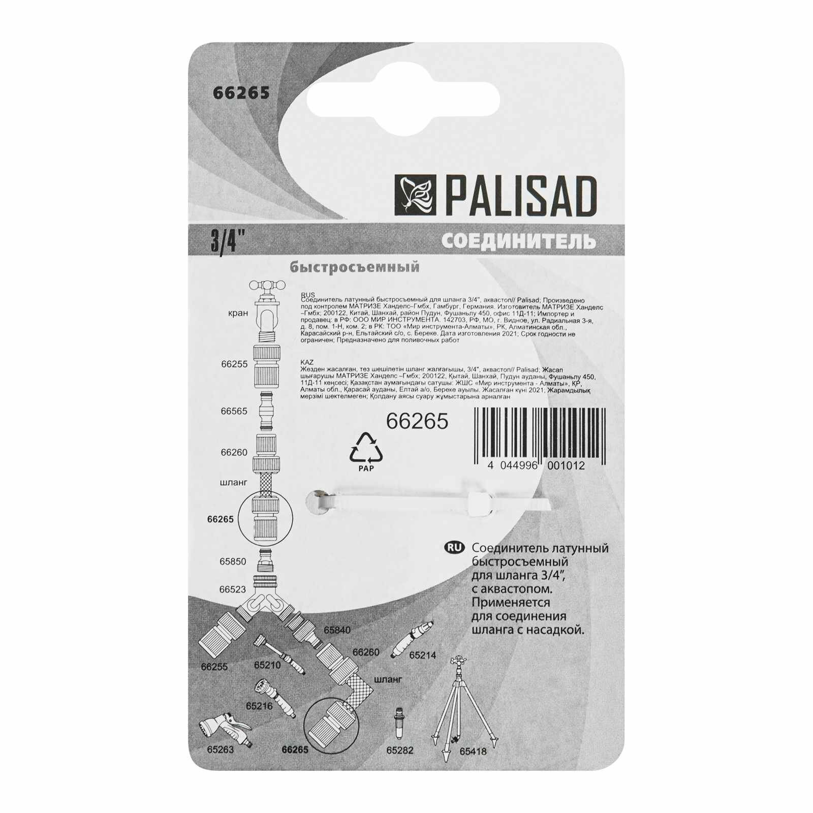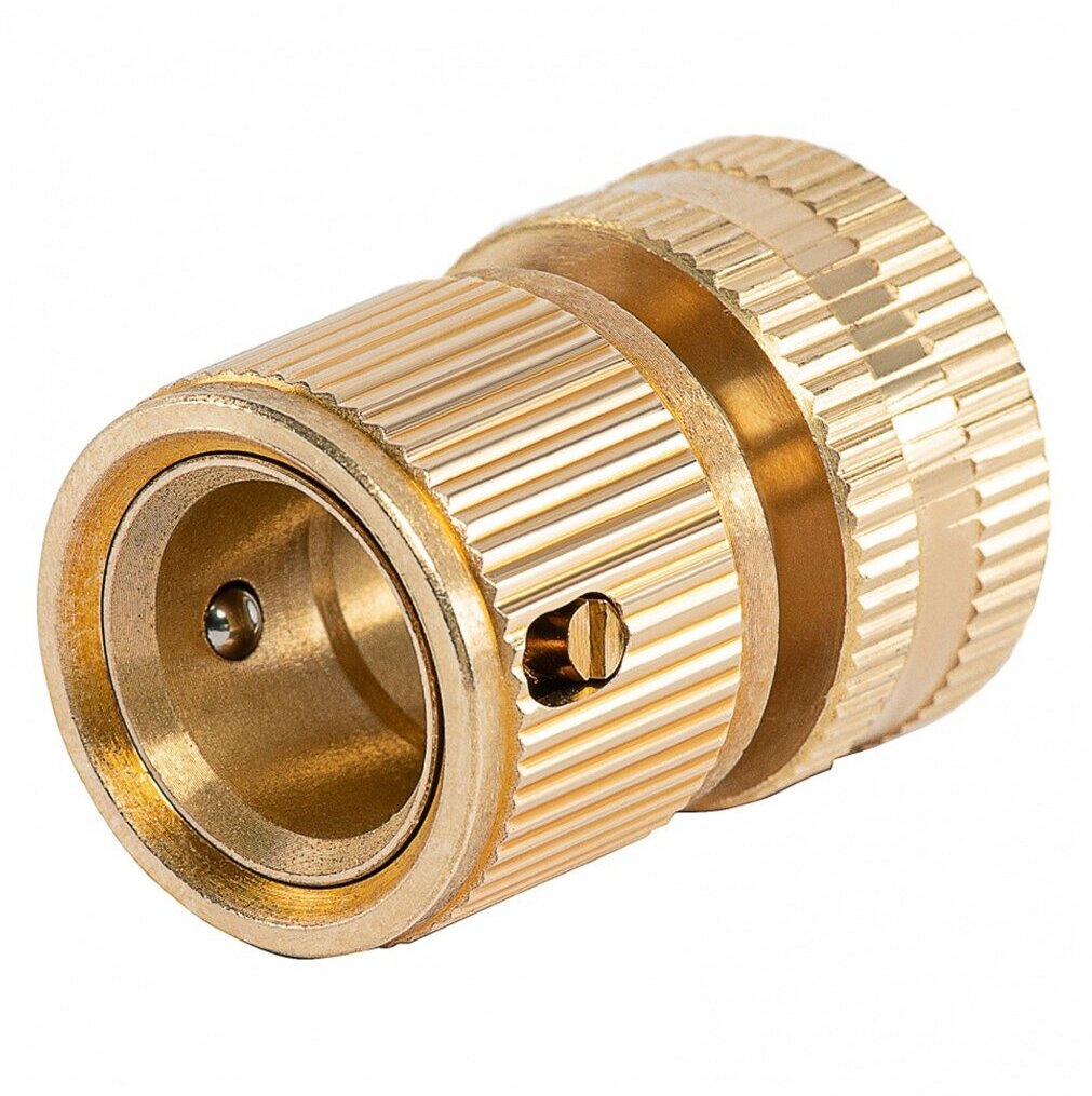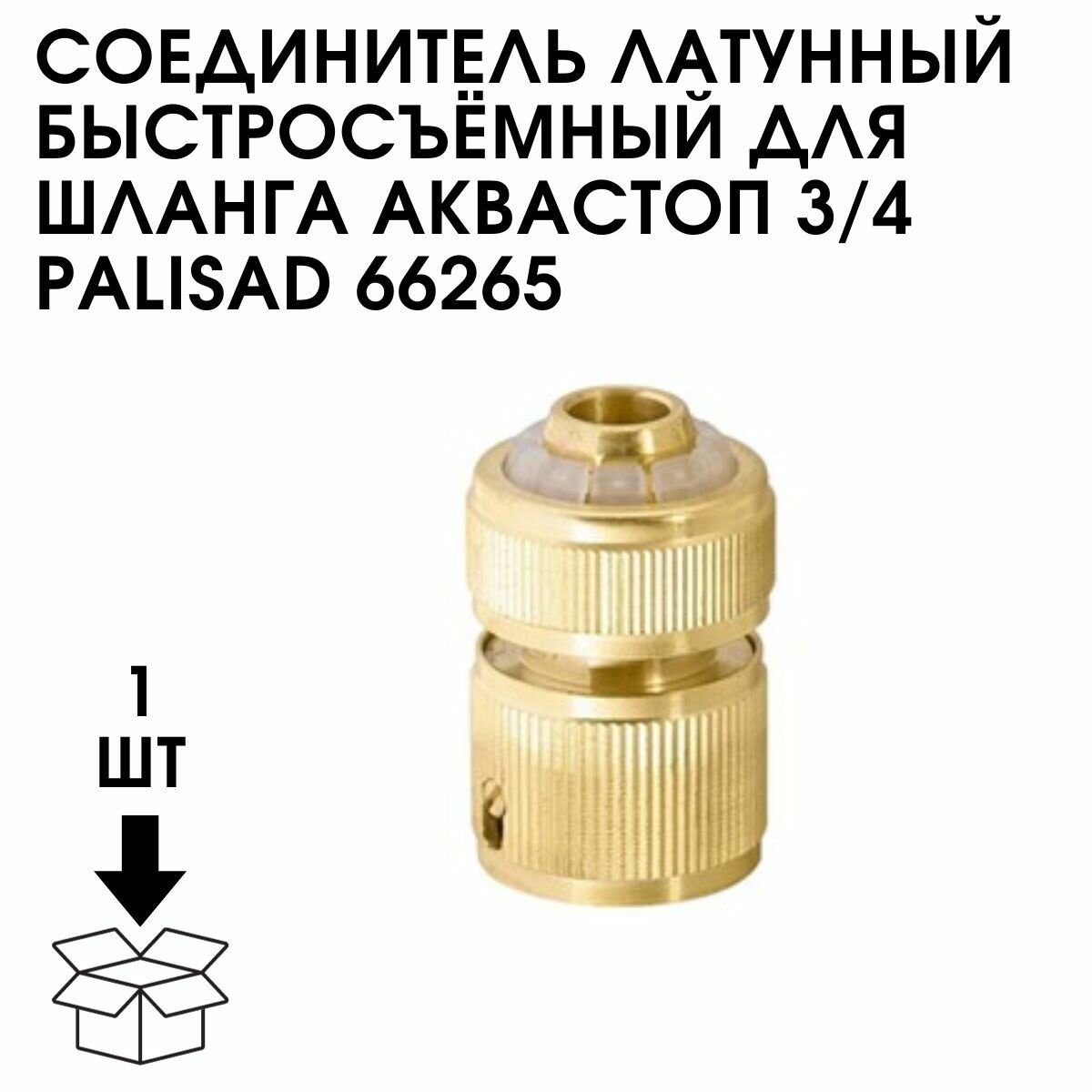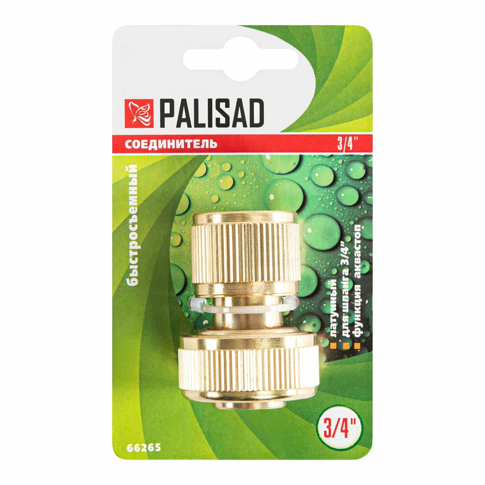 Латунный быстросъемный соединитель Palisad с клапаном автостоп рассчитан на установку шлангов диаметром 3/4 дюйма. Он используется в оросительных системах, поэтому пригодится дачникам для ухода за растениями на садово-огородном участке.
